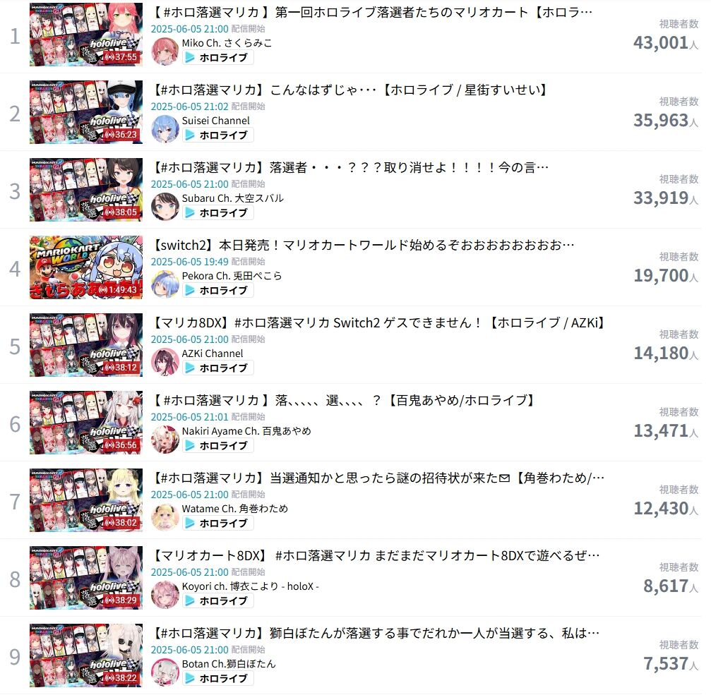 大人気Vチューバー「スイッチ2落選したメンバー集めてマリカ8大会やるぞw」→同接7万wwwwwwwwww 2025/6/6 ゲーム実況者速報 " " 1: ゲーム実況者速報 2025/06/05(木) 21:40:25.88 ID:XvRe901d0 兎田ぺこら「Switch2ゲットしたぞおおお!早速開封するぺこ!」→同説2万 何故なのか? 続きを読む Source: ゲーム実況者速報