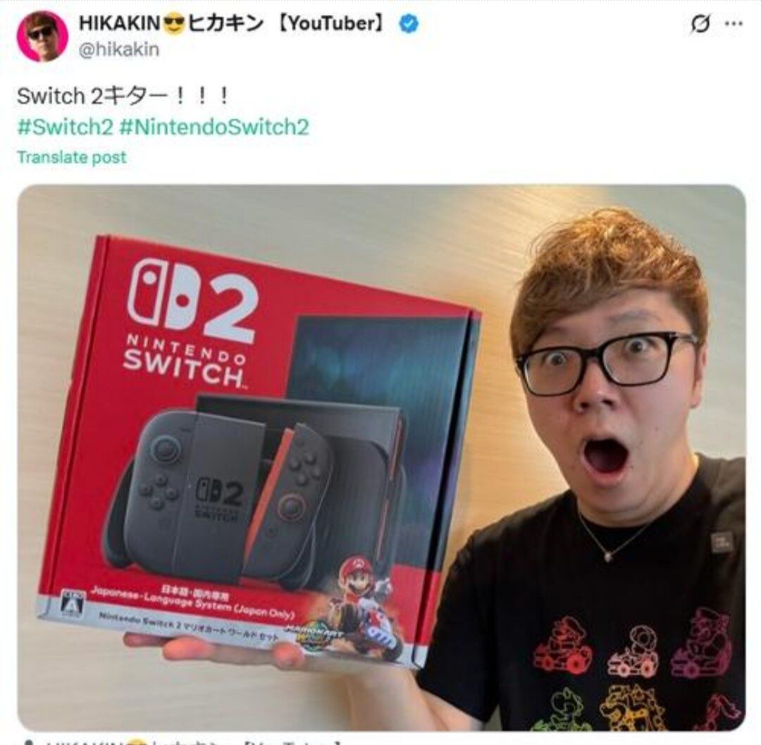 人気ユーチューバーHIKAKIN(36)が5日、X(旧ツイッター)を更新。同日発売された、家庭用ゲーム機Nintendo Switch2と手にする姿を投稿した。