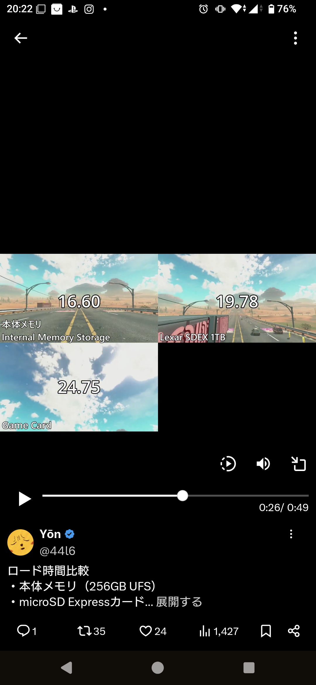 Switch2のロード、ゲームカードだと時間がかかる事が判明 2025/6/8 Y速報 " " 1: 2025/06/07(土) 20:29:02.08 ID:qt5WtwXL0 本体メモリ 16.60秒 SD Express 19.78秒 ゲームカード 24.75秒 続きを読む Source: Y速報