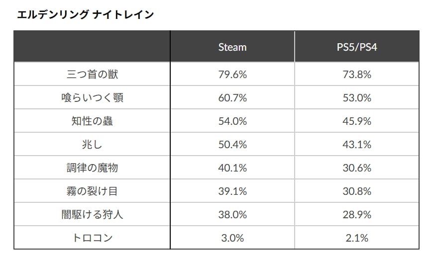 『エルデンリング ナイトレイン』、実績取得率が高い。すでにプレイヤー半数が「夜の王3体くらい」撃破済みか
