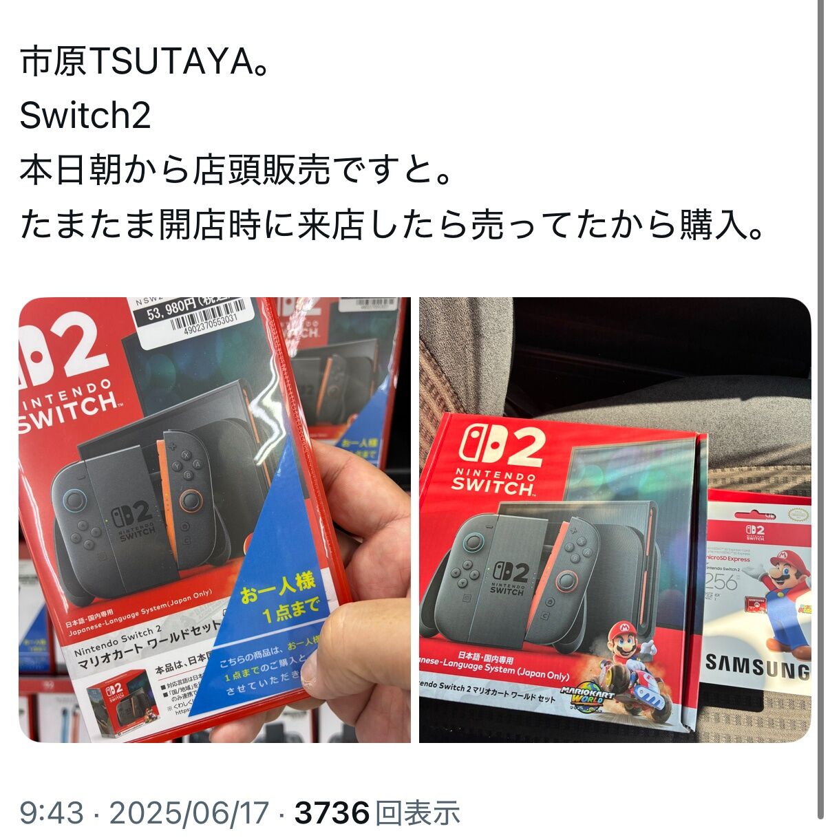 【朗報】switch2、田舎のTSUTAYAではもう普通に買える 2025/6/18 Y速報 " " 1: 2025/06/17(火) 14:38:27.75 ID:iHmO5wxS0 これもう来月には行き渡るだろ 続きを読む Source: Y速報