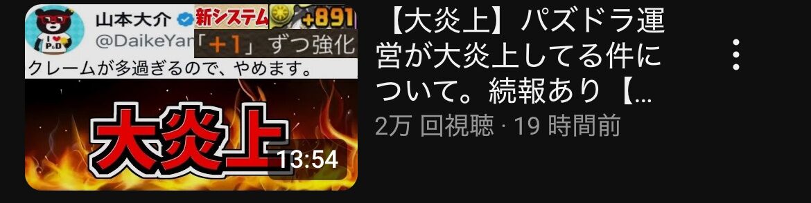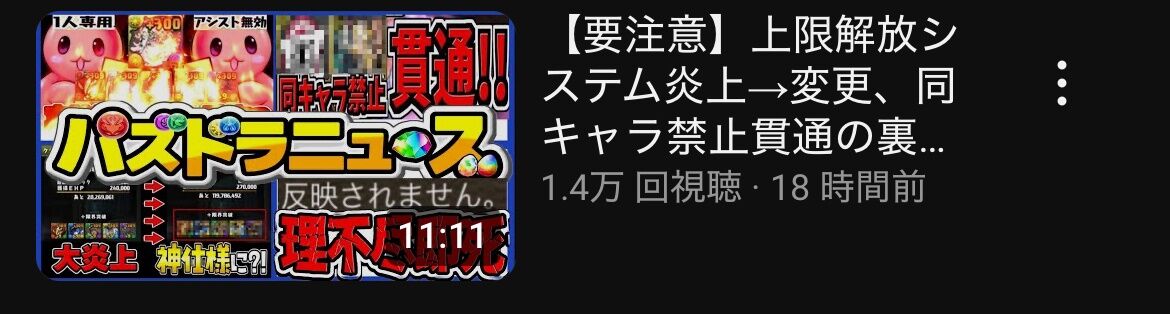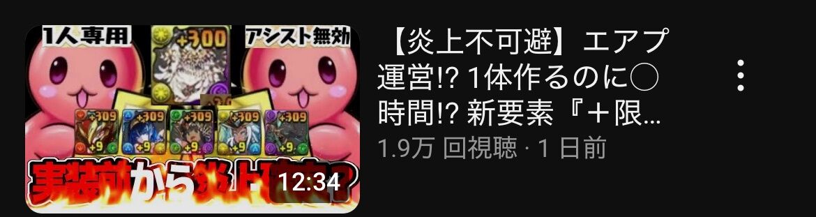 パズドラYouTuberの放火魔化が止まらない…. 2025/6/18 オーガch.-パズドラ攻略まとめ速報 " " 498: おーがちゃんねる 2025/06/18(水) 14:31:37.03 パズドラYouTuberの🌅化が止まらない…. 🌅の視聴者のストライカーは何を思って叩いてるんだろ。向こうはパズドラの100倍周回するのに 続きを読む Source: オーガch.-パズドラ攻略まとめ速報