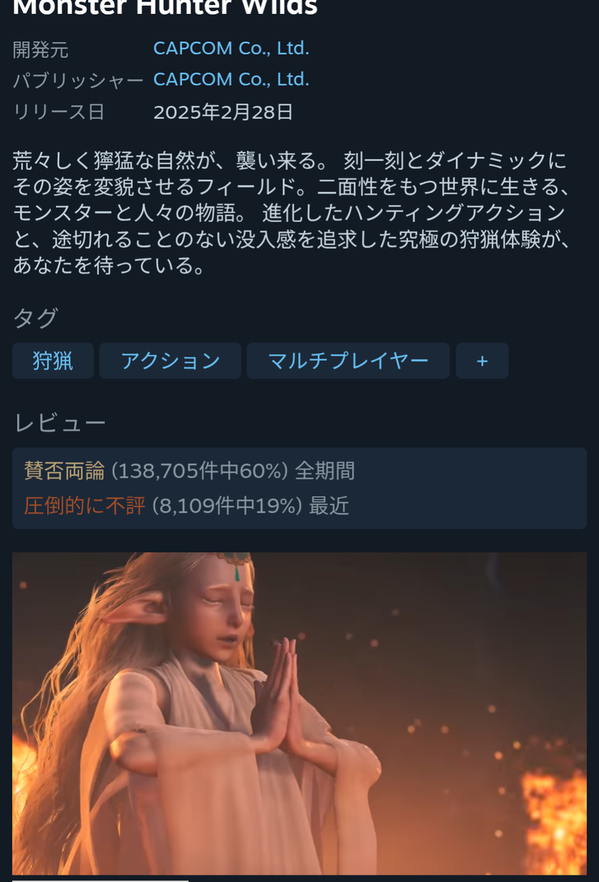 モンハンワイルズさん、ついにSteamのレビューが圧倒的に不評へ…… 2025/6/22 ゲーム実況者速報 " " 1: ゲーム実況者速報 2025/06/20(金) 00:34:24.04 ID:ABH1Oty10 続きを読む Source: ゲーム実況者速報