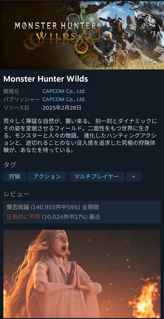 【悲報】モンハンワイルズ、圧倒的不評(17%)wwwwwwww 2025/6/23 Y速報 " " 1: 2025/06/22(日) 10:29:58.80 ID:Atkkc4bn0 なんだこれ 続きを読む Source: Y速報