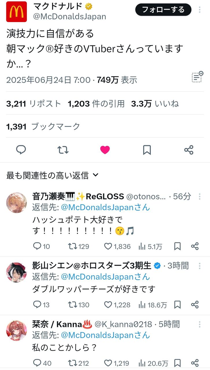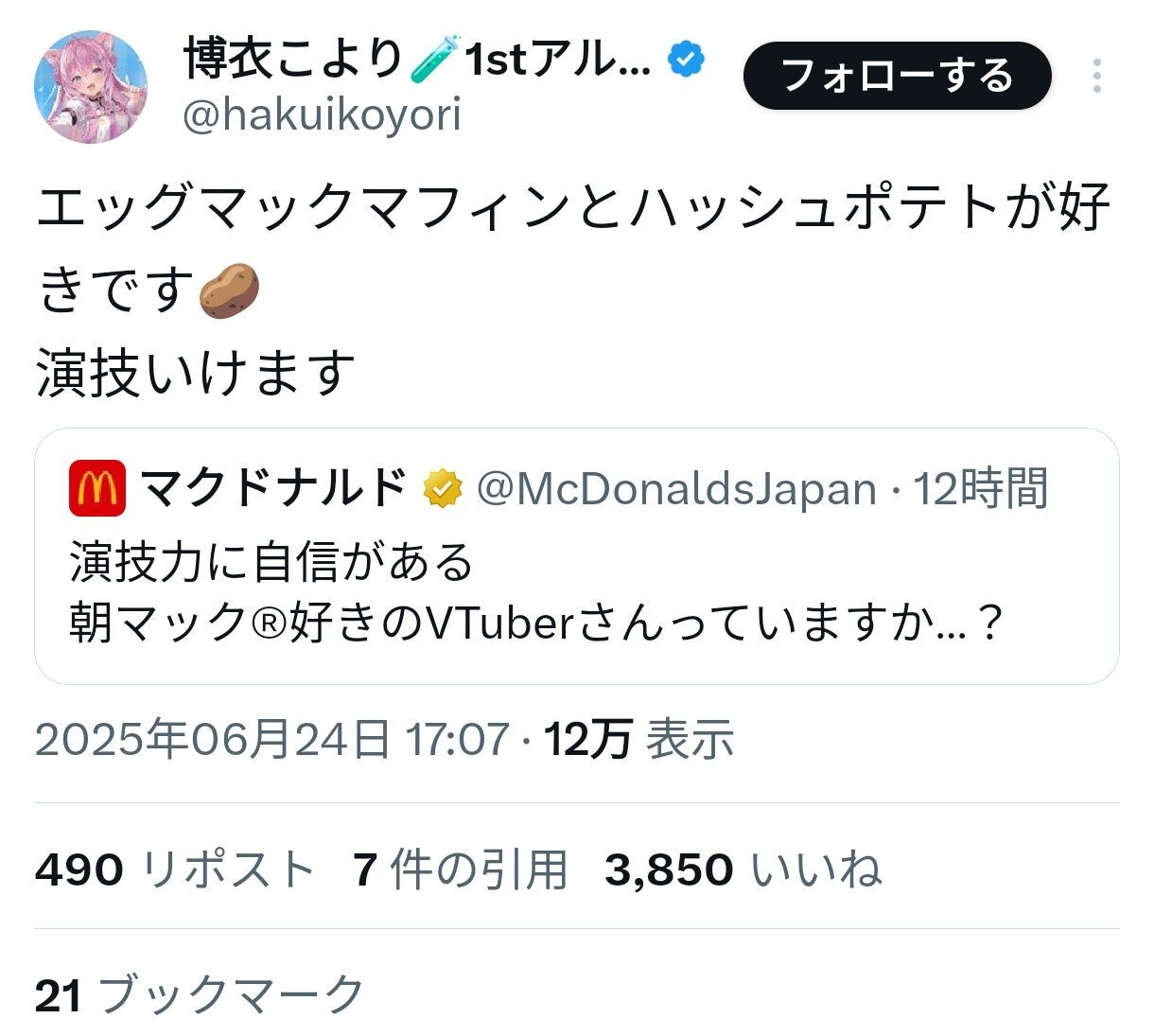 【画像】Vチューバーさん、マクドナルドに媚を売ってしまう…… 2025/6/25 ゲーム実況者速報 " " 1: ゲーム実況者速報 2025/06/24(火) 19:20:22.399 ID:Y3Bsk6Tr0 続きを読む Source: ゲーム実況者速報