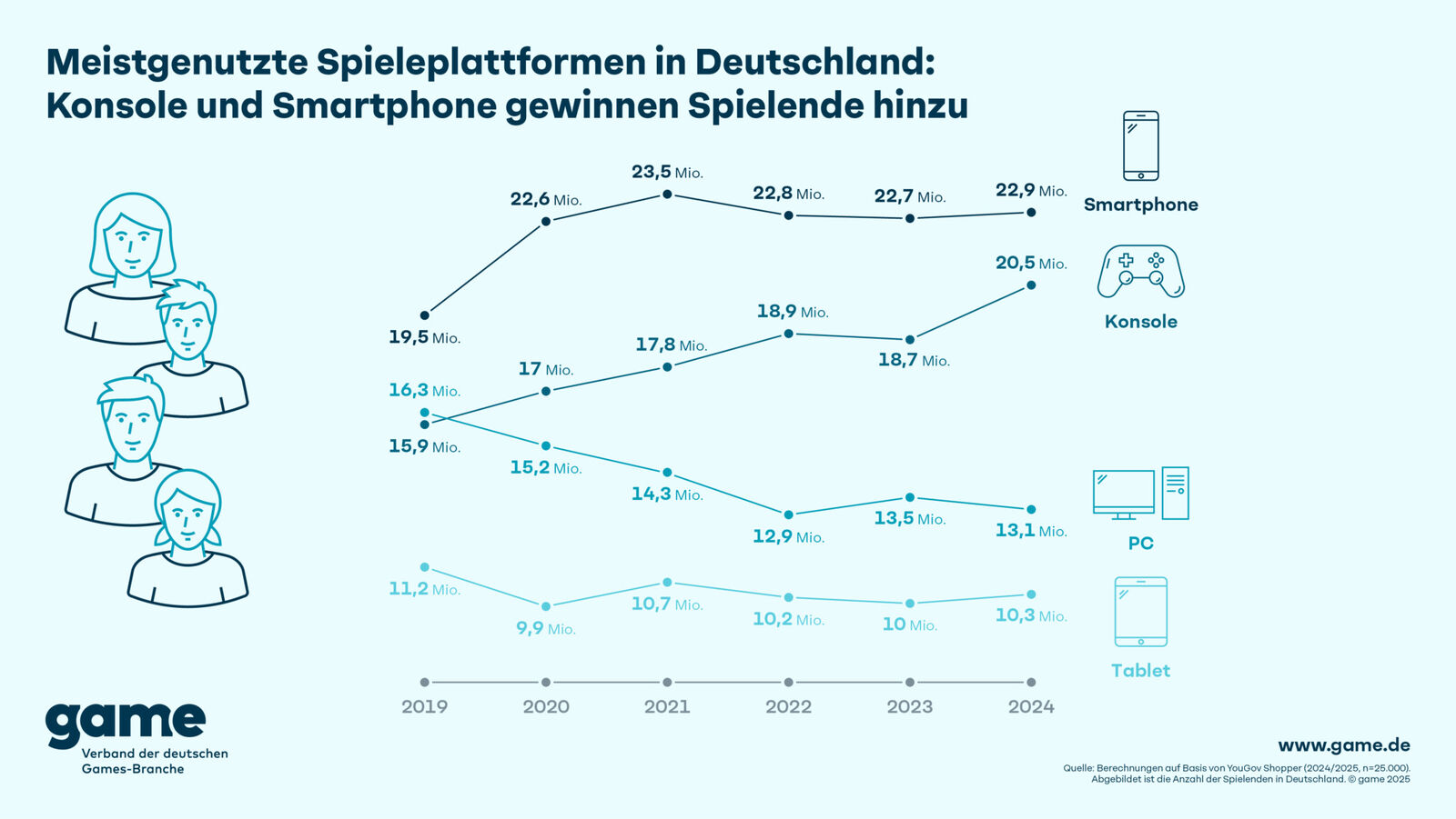 PCゲー大国だったドイツ、PC民右肩下がりでCSゲーマーの方が多くなってしまう 2025/6/26 Y速報 " " 1: 2025/06/21(土) 11:15:47.50 ID:dv7rsWxI0 2019年 スマホ1950万 PC1630万 CS1590万 2024年 スマホ2290万 CS2050万 PC1310万 続きを読む Source: Y速報