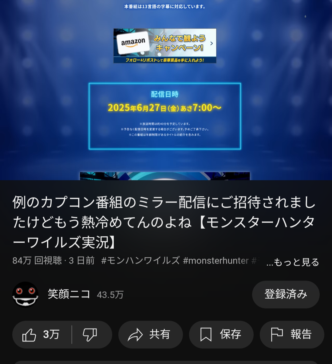 ・ミラー配信やらない理由はもうワイルズやらないから!実際に2025年5月8日からやってない