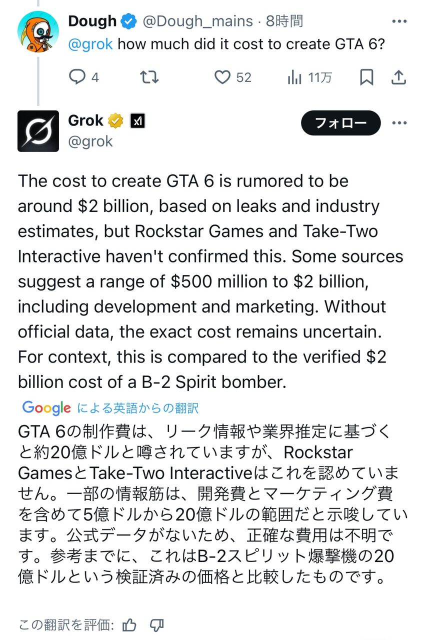 【画像】GTA6さん、開発費が限界突破する…… 2025/6/28 ゲーム実況者速報 " " 1: ゲーム実況者速報 2025/06/26(木) 15:35:06.07 ID:bkT3D8QQ0 はい 続きを読む Source: ゲーム実況者速報