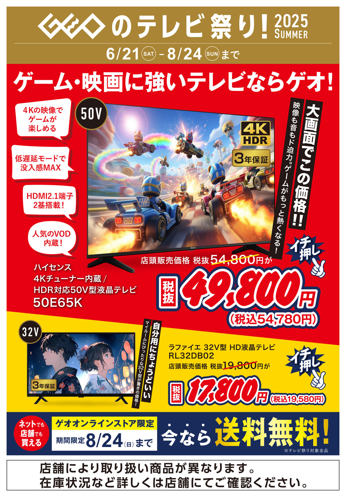 ゲオさん、ゲーム向けテレビを格安で販売! 2025/6/30 Y速報 " " 1: 2025/06/29(日) 10:30:06.21 ID:MHxijwxx0 もうこれでええやん 続きを読む Source: Y速報