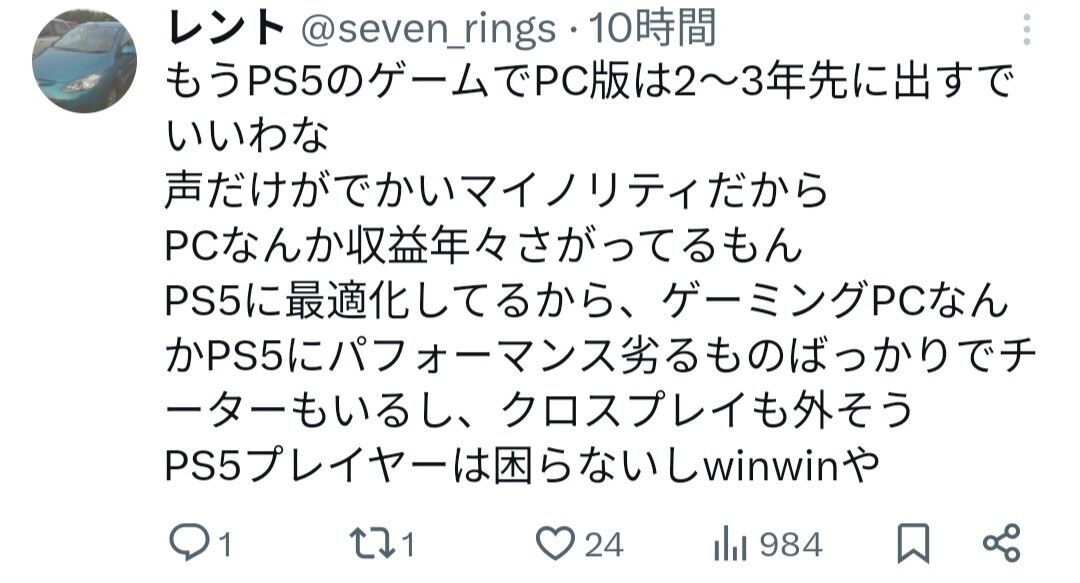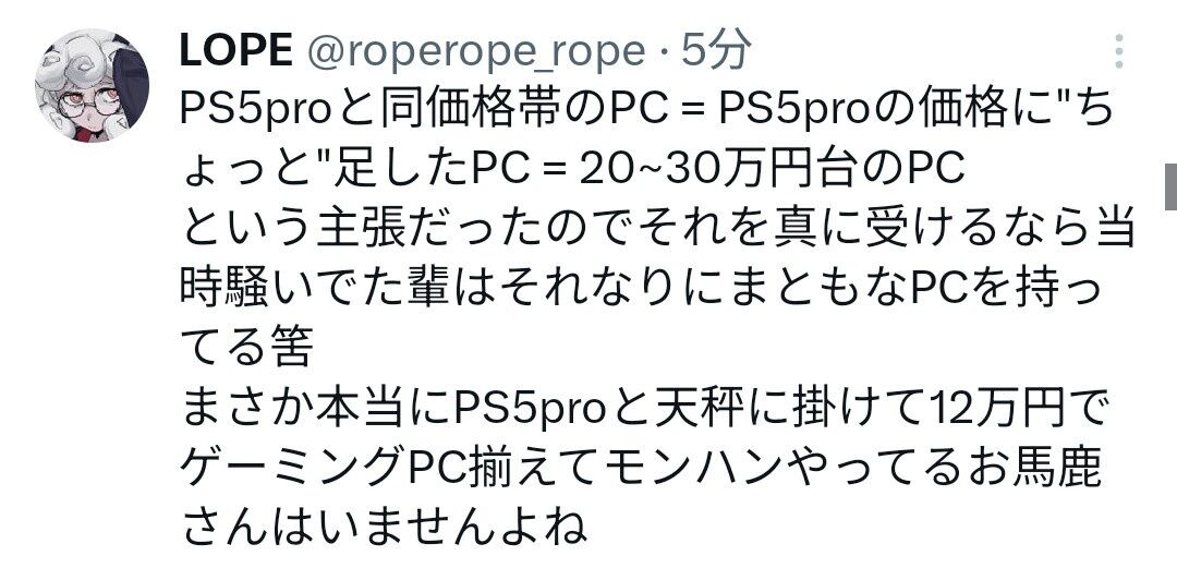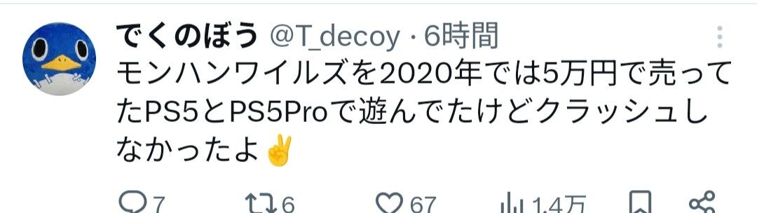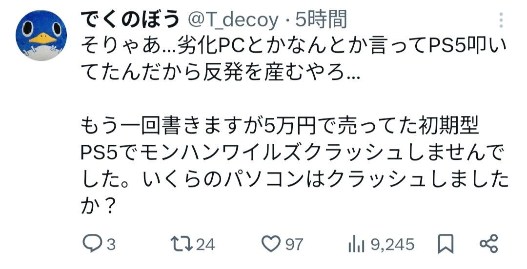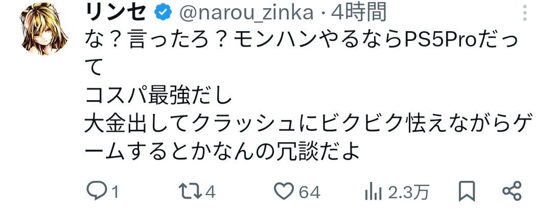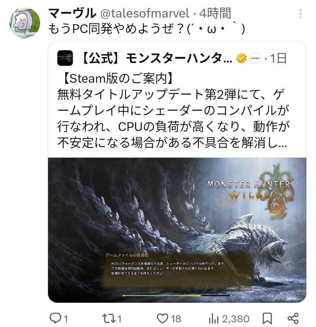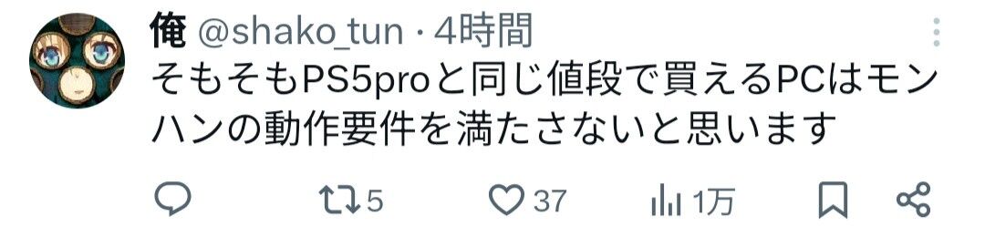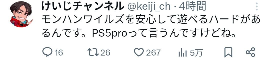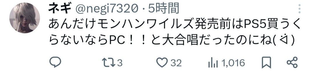 モンハンワイルズさん、PCを買うよりPS5を買うべきだとXで話題になってしまう…… 2025/7/2 ゲーム実況者速報 " " 1: ゲーム実況者速報 2025/07/01(火) 17:47:11.41 ID:axcfz4ugd 過疎ゲハとは違い2万人とかに見られてみんな納得してる 続きを読む Source: ゲーム実況者速報