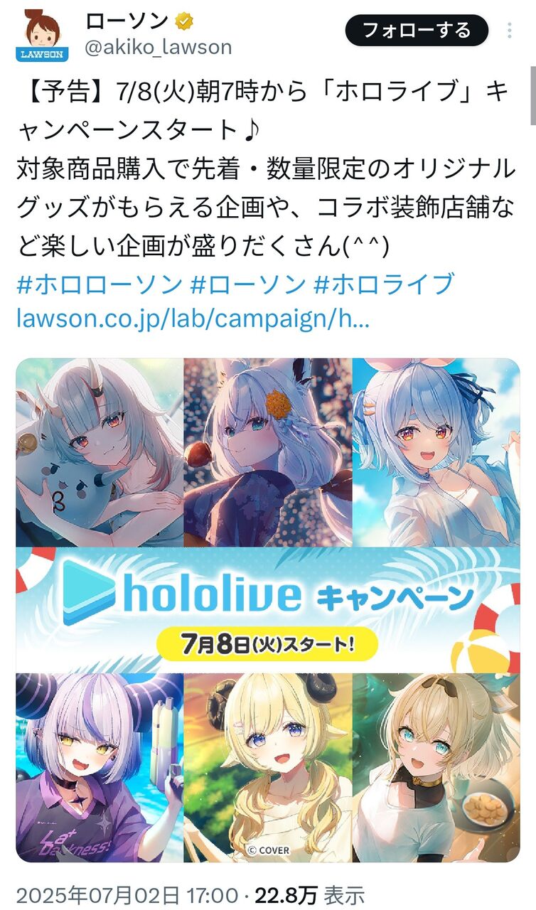 【画像】一番手Vグループさん、ローソンとコラボ決定! 2025/7/3 ゲーム実況者速報 " " 1: ゲーム実況者速報 2025/07/02(水) 17:47:57.720 ID:TZxYoZRl0 続きを読む Source: ゲーム実況者速報