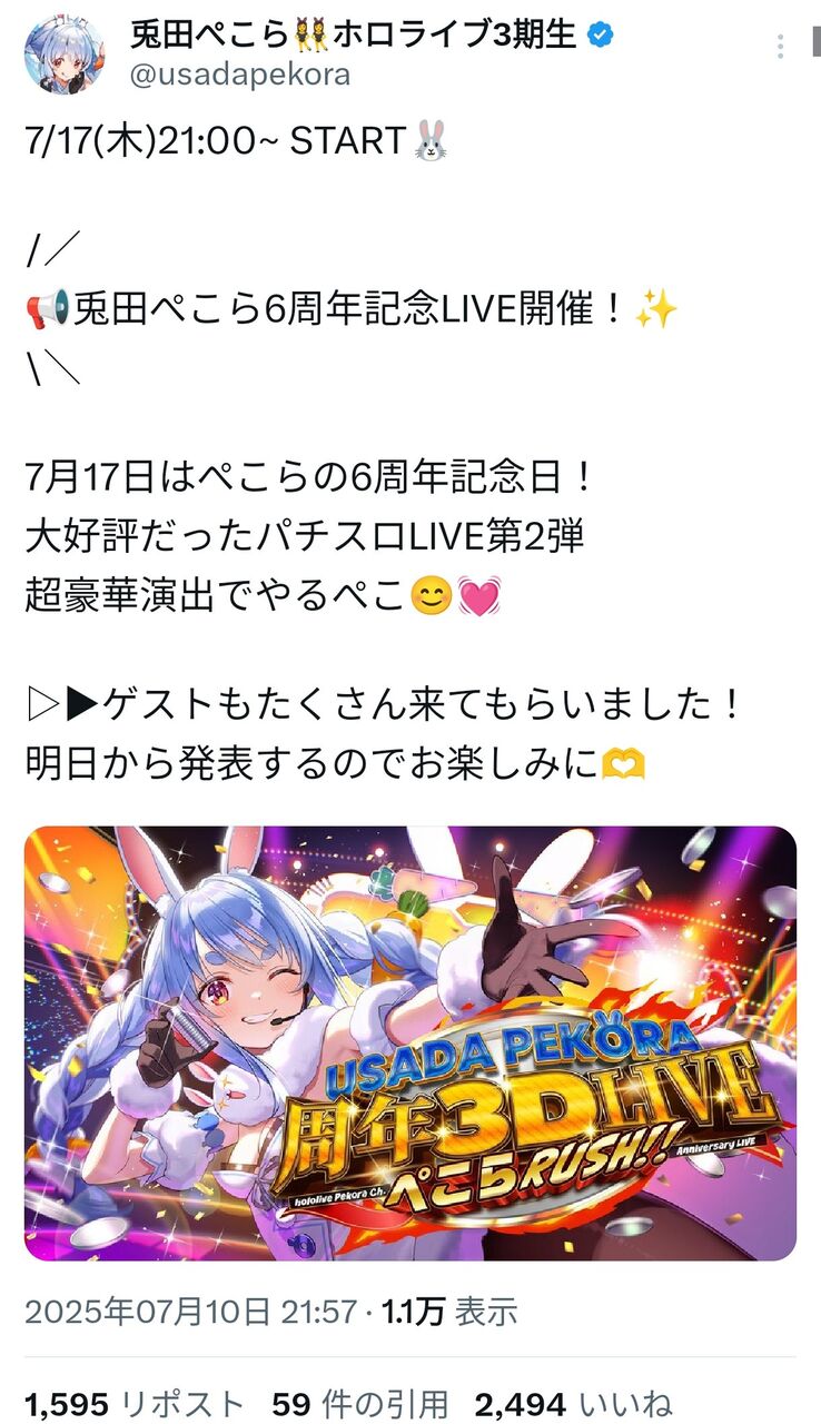 【朗報】超人気Vチューバーさん、周年記念3Dライブ配信キタ━━━━(゚∀゚)━━━━!! 2025/7/11 ゲーム実況者速報 " " 1: ゲーム実況者速報 2025/07/10(木) 22:01:07.963 ID:Qak8fY7S0 https://pbs.twimg.com/media/Gvf2VBNakAMFo1T?format=jpg&name=large 続きを読む Source: ゲーム実況者速報