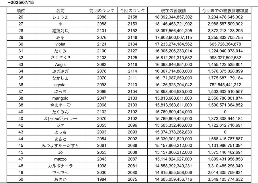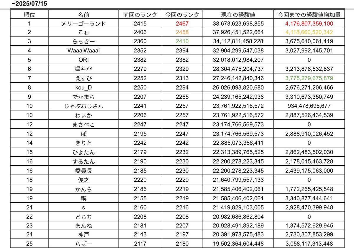[ランク集計 集計日時 2025.6月15日22時〜7月15日22時]