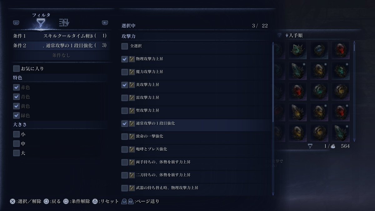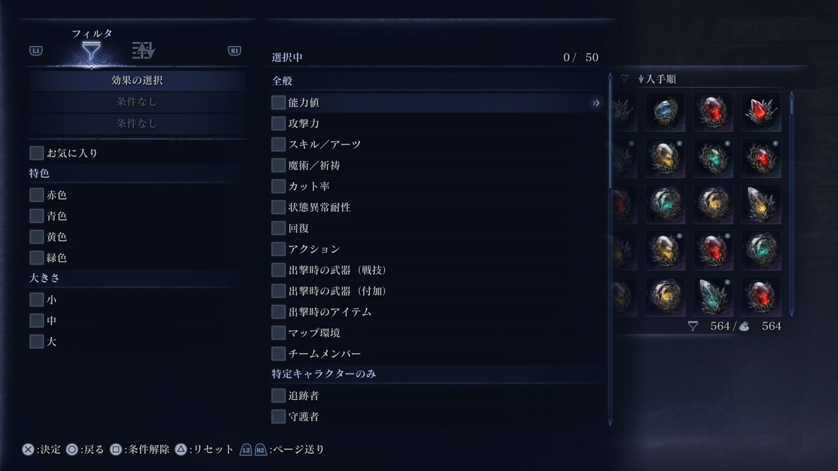また、アップデートには2人出撃の追加の他に、遺物一覧のフィルタで特定の効果を指定できるようになるといった一部UIの改善なども含まれます。