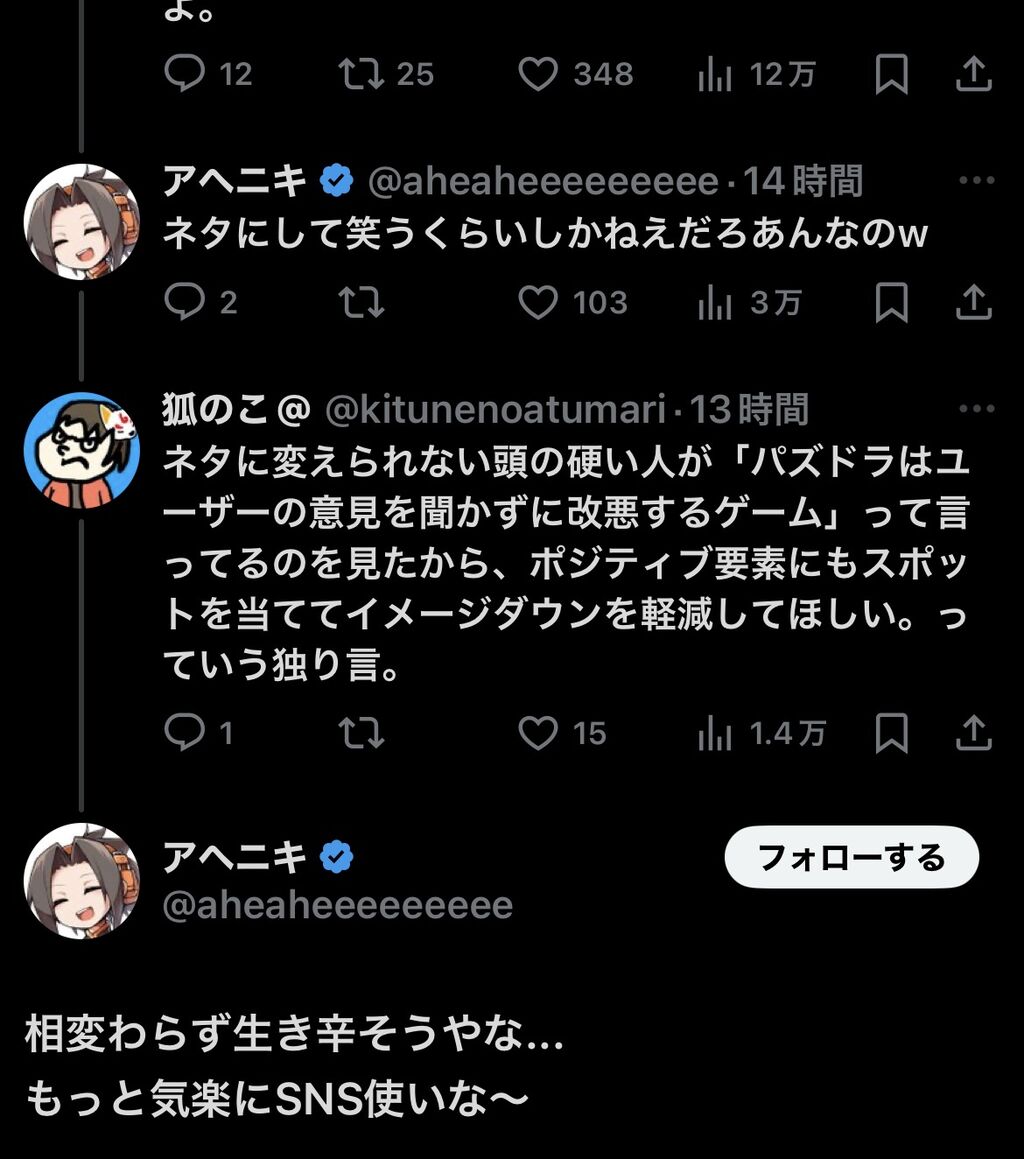 【悲報】人気配信者さん、そろそろスレ民に嫌われそう・・・【パズドラ】 2025/7/31 オーガch.-パズドラ攻略まとめ速報 " " 552: おーがちゃんねる 2025/07/31(木) 14:18:21.61 お前はさっさとモンストに移行しろよ 続きを読む Source: オーガch.-パズドラ攻略まとめ速報