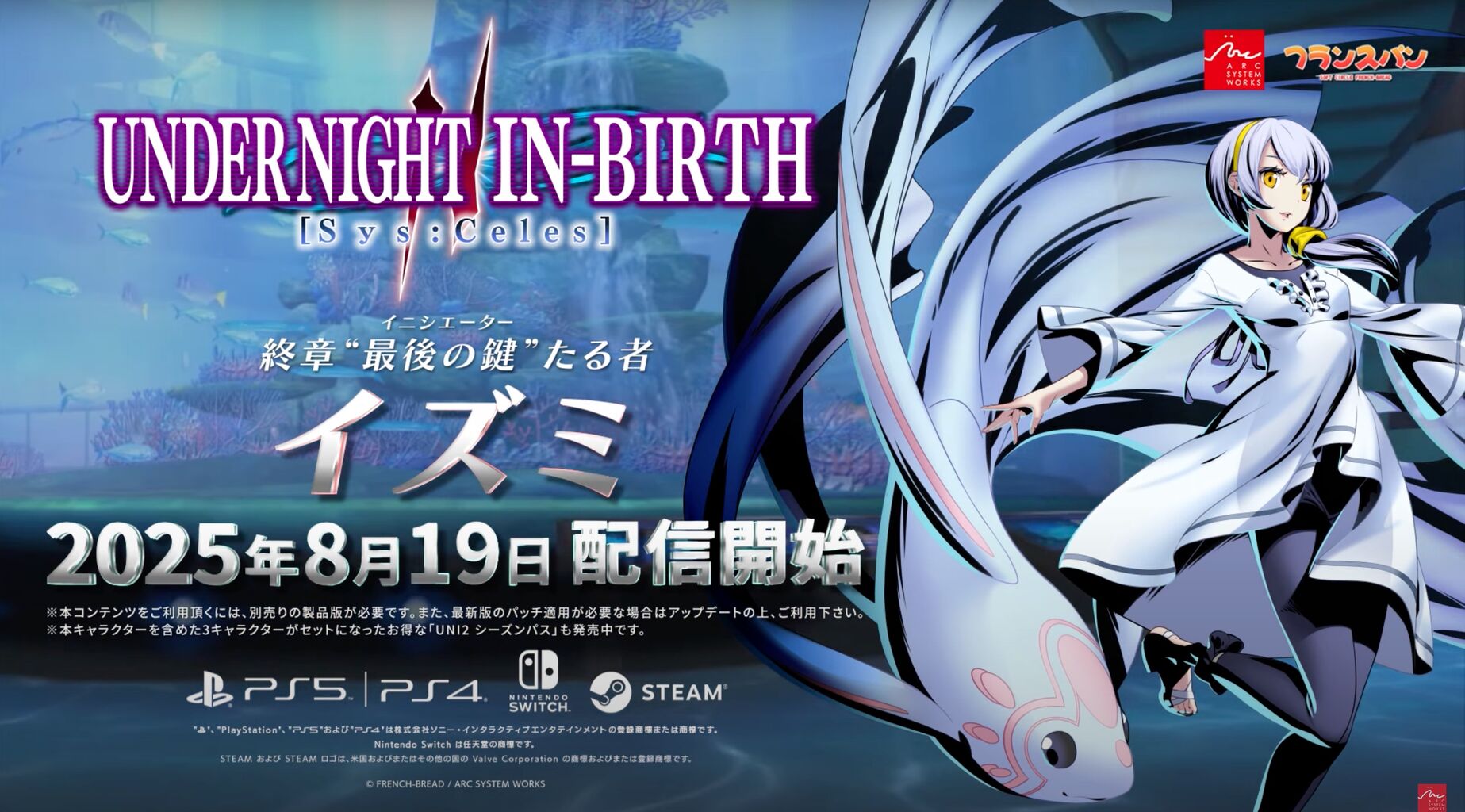 🎮️Nintendo Switch:8月21日AM10時(JST)https://t.co/afwgBbWRb7#UN2 #inbirth #Izumi #EVO2025 pic.twitter.com/XQKADrdpSp— 【公式】『UNDER NIGHT IN-BIRTH(アンダーナイト インヴァース)』 (@inbirthPR) August 2, 2025