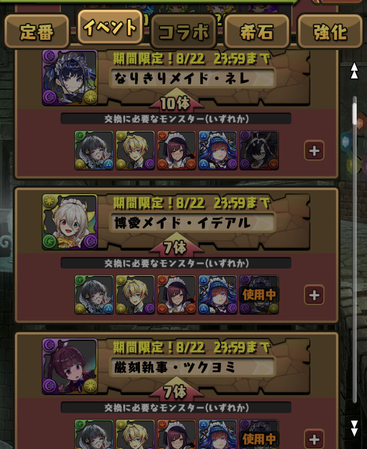 【パズドラ】執事メイドガチャ開幕!メイドイデアル交換復刻キタ━(゚∀゚)━!! 2025/8/8 オーガch.-パズドラ攻略まとめ速報 " " 交換弾10体:なりきりメイドネレ交換弾7体:メイドイデアル、執事ツクヨミ、交換弾5体:メイドカミムスビ、執事アルバート、執事ミカゲ 続きを読む Source: オーガch.-パズドラ攻略まとめ速報