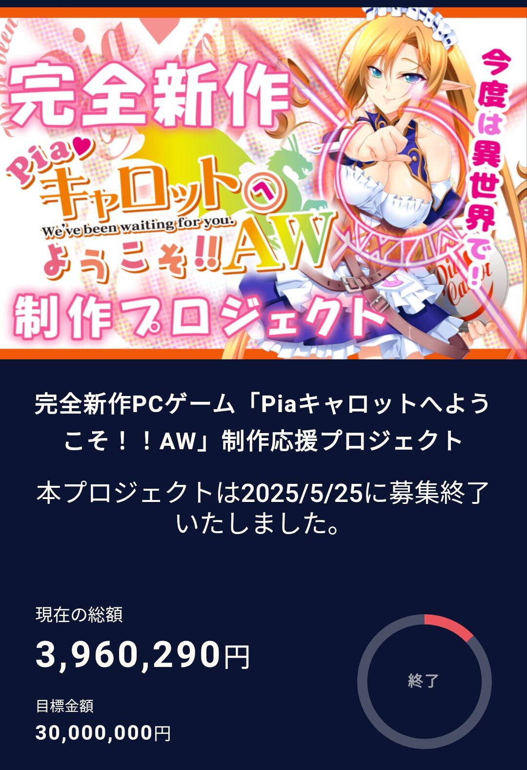 『Piaキャロットへようこそ!!AW』クラファンが終了致しました。