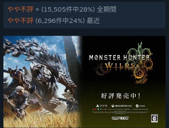 Steam表示方式が変わりワイルズさんの日本表示がおかしくなる… 2025/8/19 Y速報 " " 1: 2025/08/19(火) 13:33:25.43 ID:9FpQequE0 自分の国のレビューが表示優先されるようになった影響で日本人にはこれが突きつけられる模様 続きを読む Source: Y速報