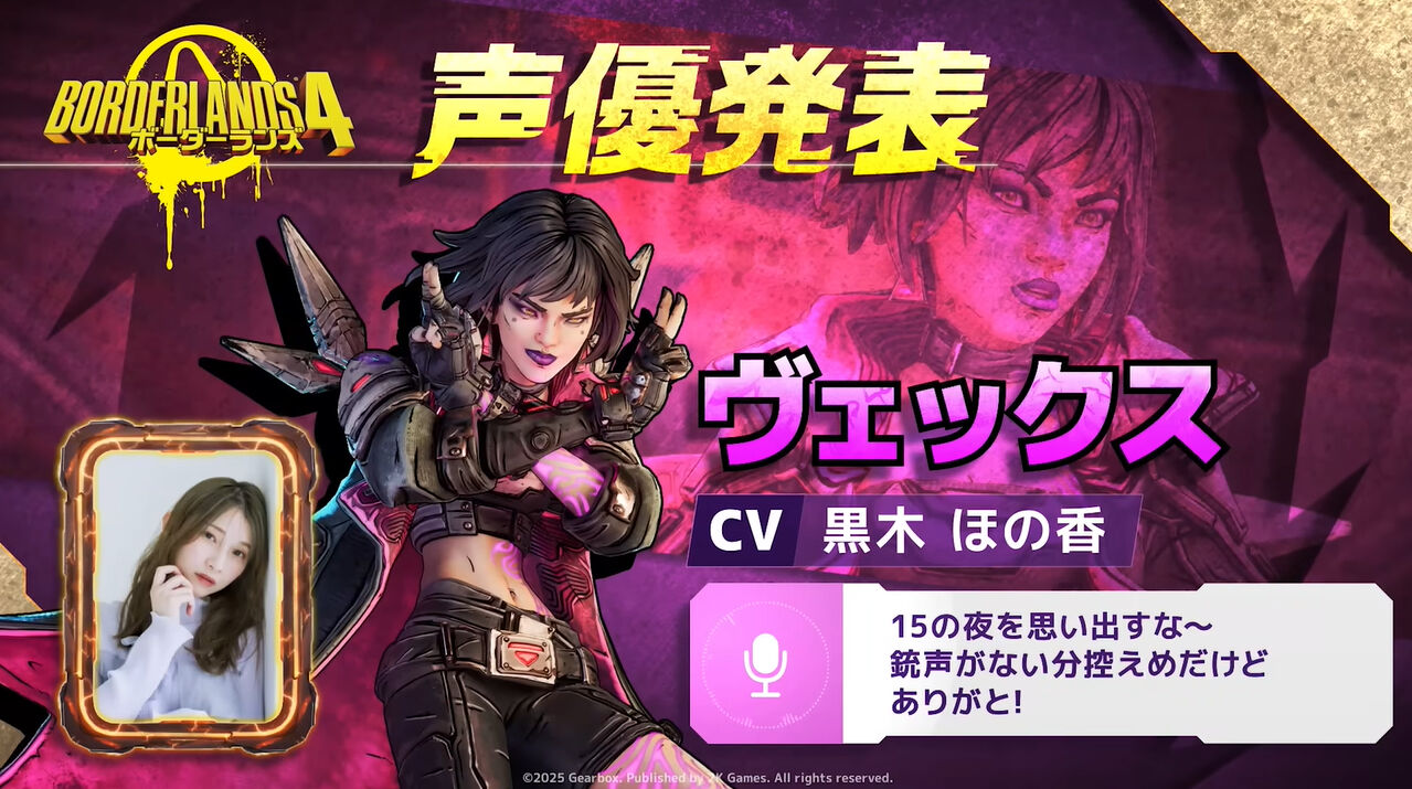 「大のゲーム好きの私が、以前からの夢であった声優として参加させていただき、本当に嬉しく思っています。ボダラン4、皆様と一緒にプレイできる日を心待ちにしています!」