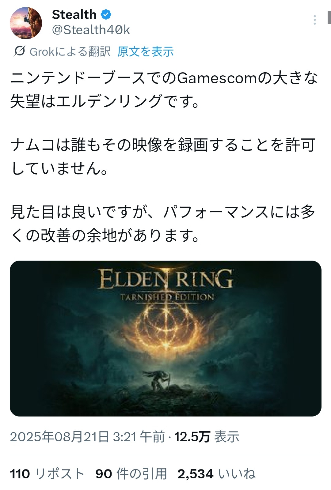・エルデンリングはグラは良いがパフォーマンスに難あり大きな失望