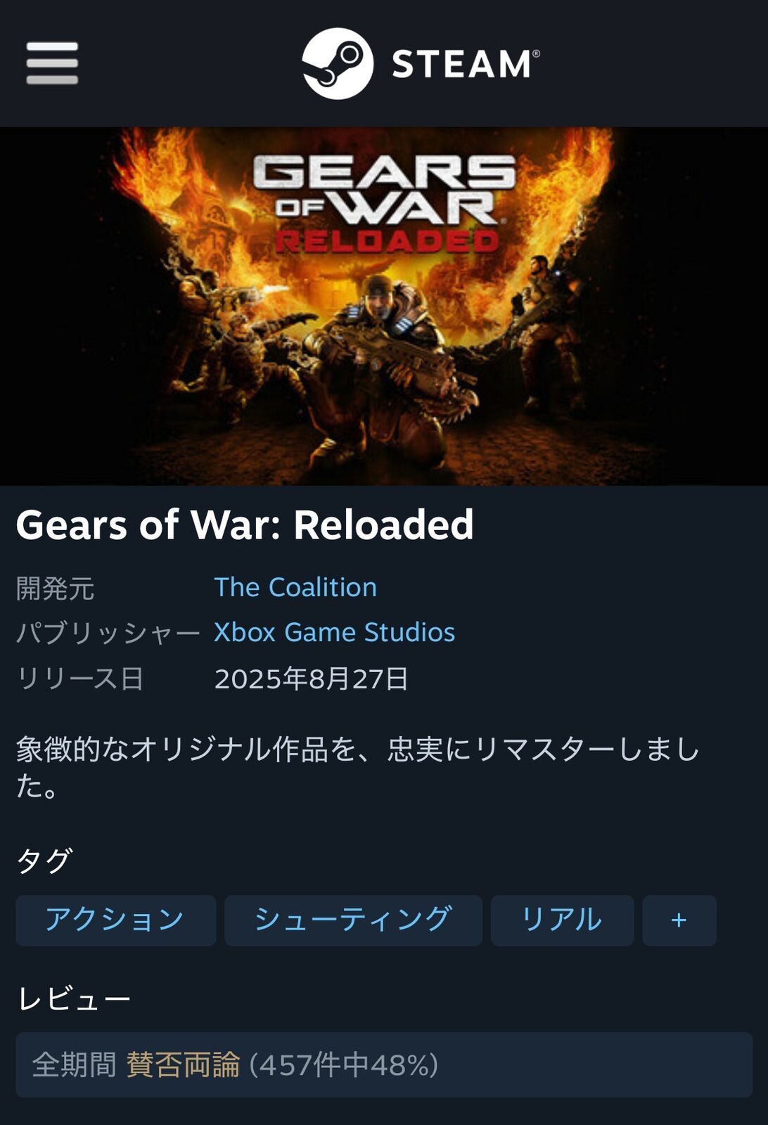 【悲報】Gears of War: Reloaded、Steam評価賛否両論 2025/8/28 Y速報 " " 1: 2025/08/27(水) 13:08:01.74 ID:fNMlLGRp0 なんでや… 続きを読む Source: Y速報