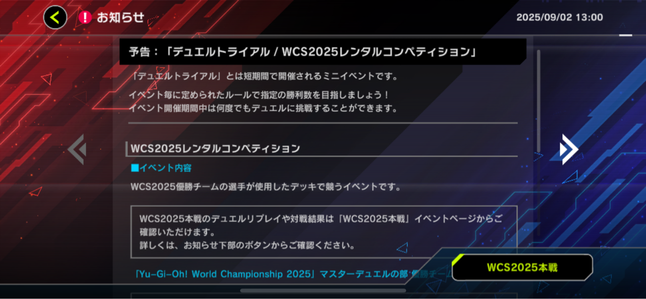 【予告】「デュエルトライアル/WCS2025レンタルコンペティション」