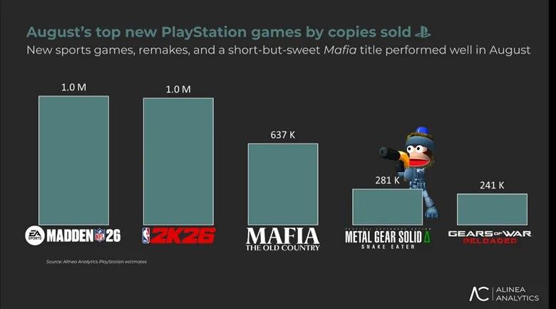 メタルギア3リメイク、PS版の売上世界で28万本 2025/9/4 Y速報 " " 1: 2025/09/03(水) 21:19:51.96 ID:7EblmEbr0 2: 2025/09/03(水) 21:21:56.73 ID:7EblmEbr0 ソース https://alineaanalytics.substack.com/p/augusts-most-downloaded-games-across 続きを読む Source: Y速報