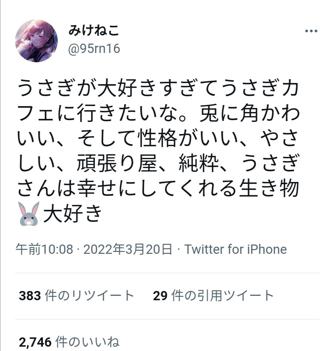 みけねこさん「うさぎ大好き。うさぎは幸せにしてくれる生き物」 2025/9/5 ゲーム実況者速報 " " 1: ゲーム実況者速報 2025/08/29(金) 19:11:30.41 ID:iRMDfF380NIKU うさぎが大好きすぎてうさぎカフェに行きたいな。兎に角かわいい、そして性格がいい、やさしい、頑張り屋、純粋、うさぎさんは幸せにしてくれる生き物と大好き 続きを読む Source: ゲーム実況者速報