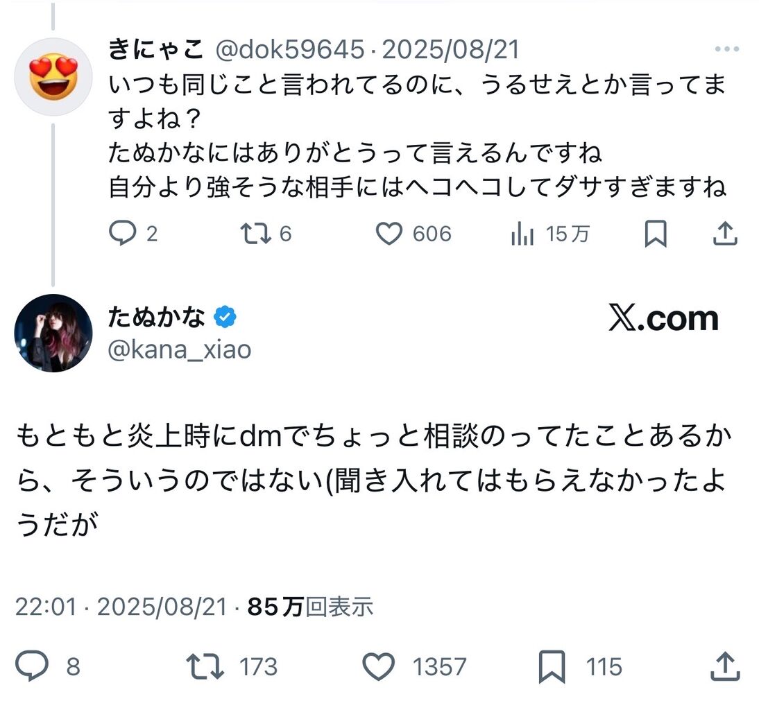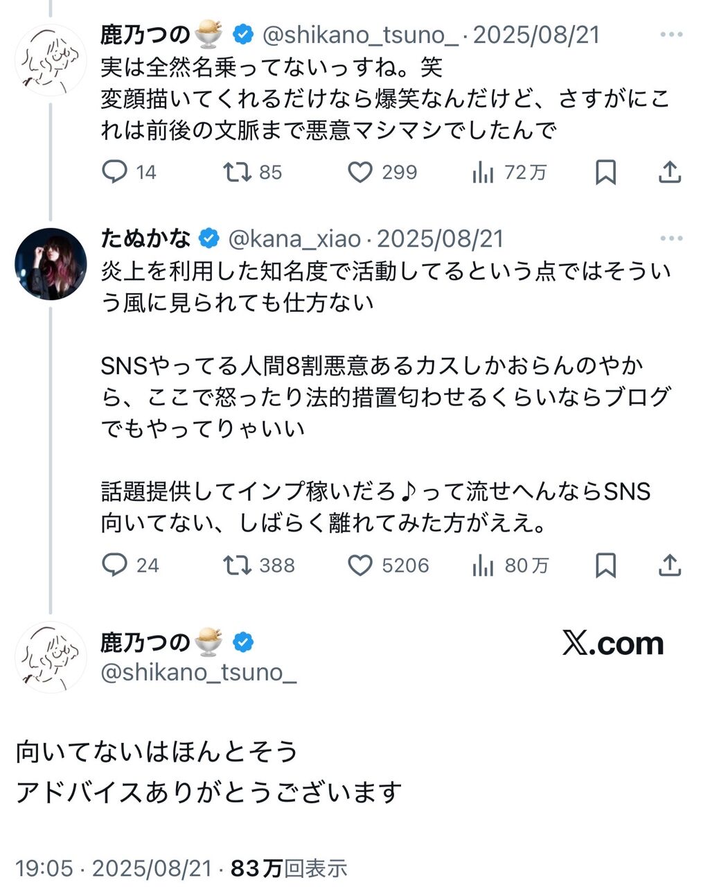 たぬかな氏、実は鹿乃つの炎上初期にもDMで相談に乗っていたことを明かす