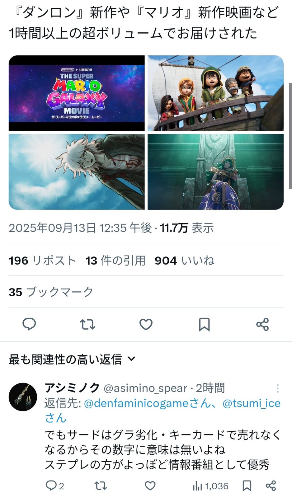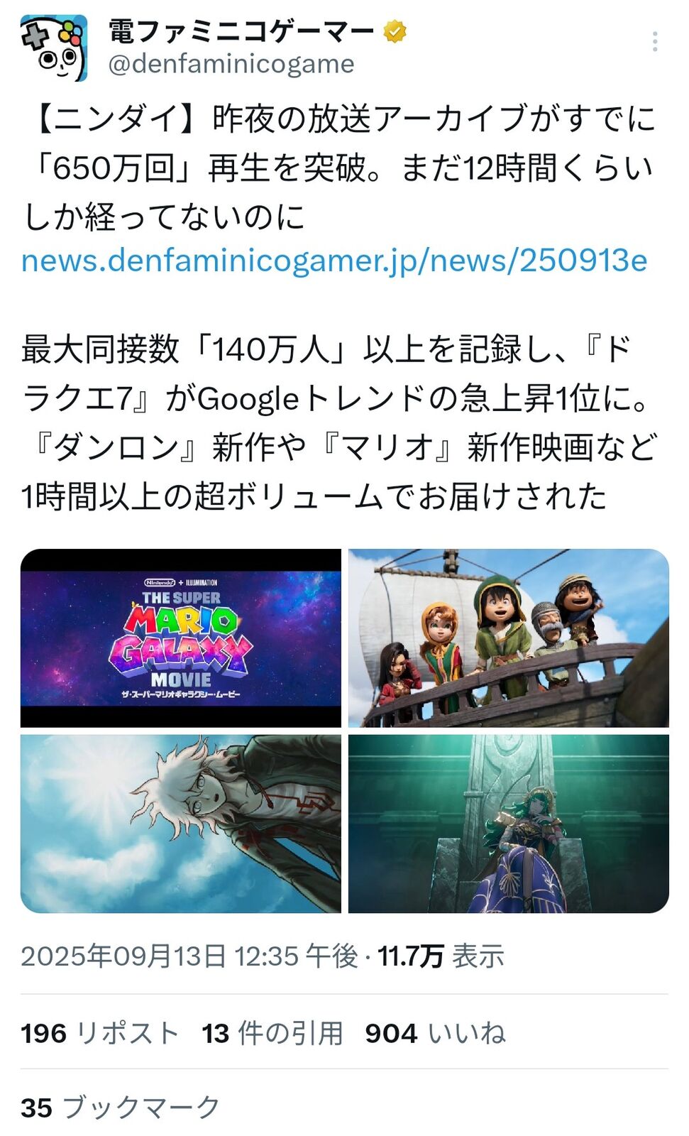 メディア「昨夜のニンダイアーカイブが既に650万再生を突破。まだ12時間ぐらいしか経ってないのに」 2025/9/14 Y速報 " " 1: 2025/09/13(土) 16:51:19.49 ID:WM8USKuwd 続きを読む Source: Y速報