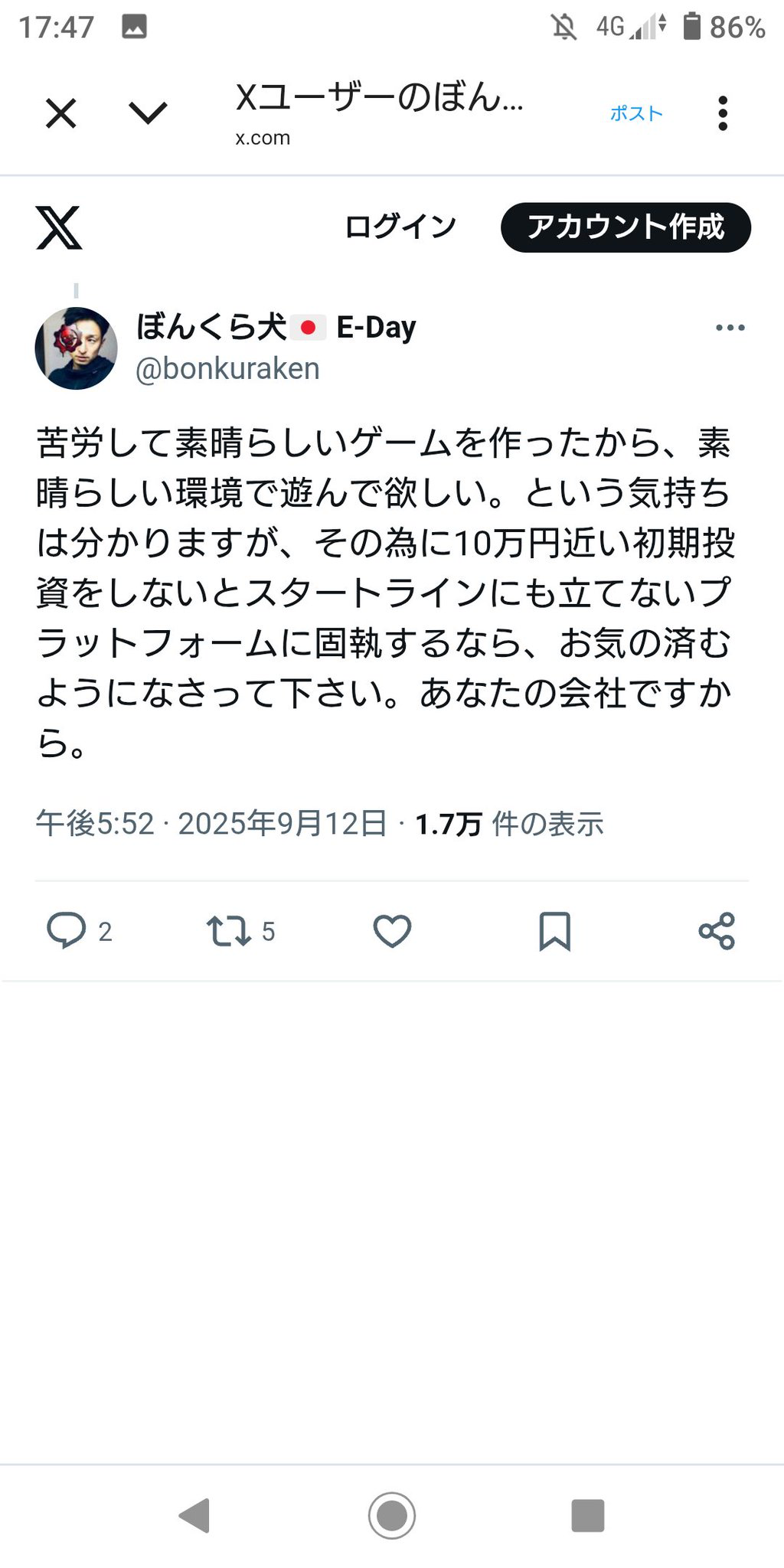 有識者「ゲームを遊ぶために10万円の初期投資をしなきゃいけないのはバカ」 2025/9/16 Y速報 " " 1: 2025/09/15(月) 16:56:35.94 ID:G7mzJzAI0 これは本当にそう だから任天堂に勝てない 続きを読む Source: Y速報