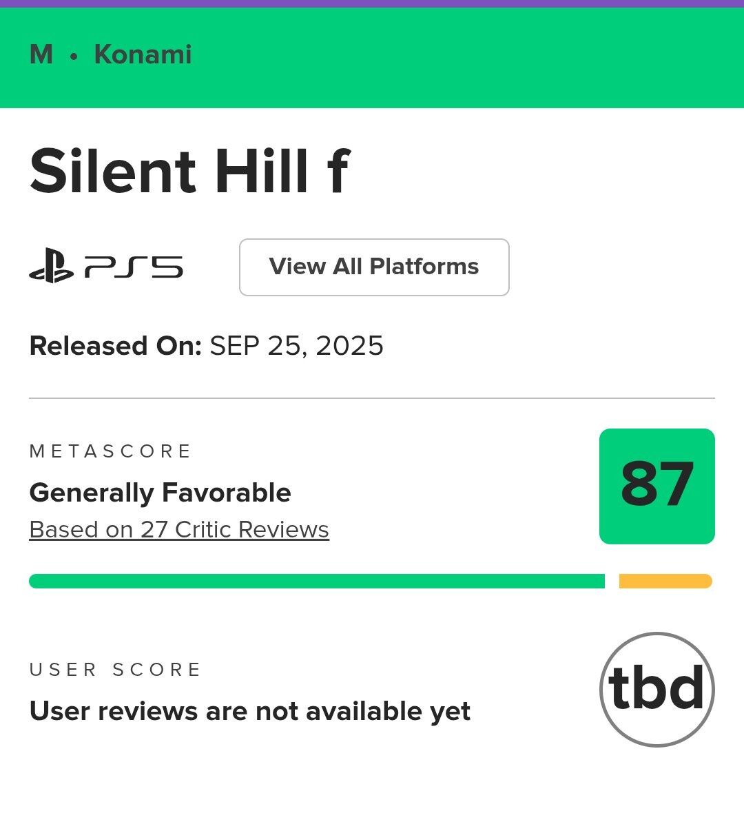 サイレントヒルf、メタスコア87 2025/9/22 Y速報 " " 1: 2025/09/22(月) 16:04:26.29 ID:dKa2G2at0 現時点での数字です 続きを読む Source: Y速報