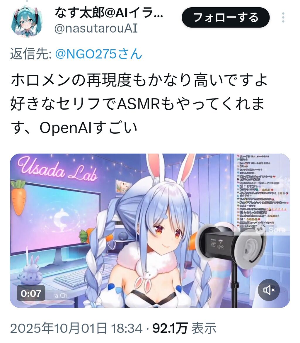 このクオリティで声まで本物って許されるんですか?#Sora2 pic.twitter.com/Nih0B8ErsD— SSSS_CRYPTOMAN (@SSSS_CRYPTOMAN) October 1, 2025