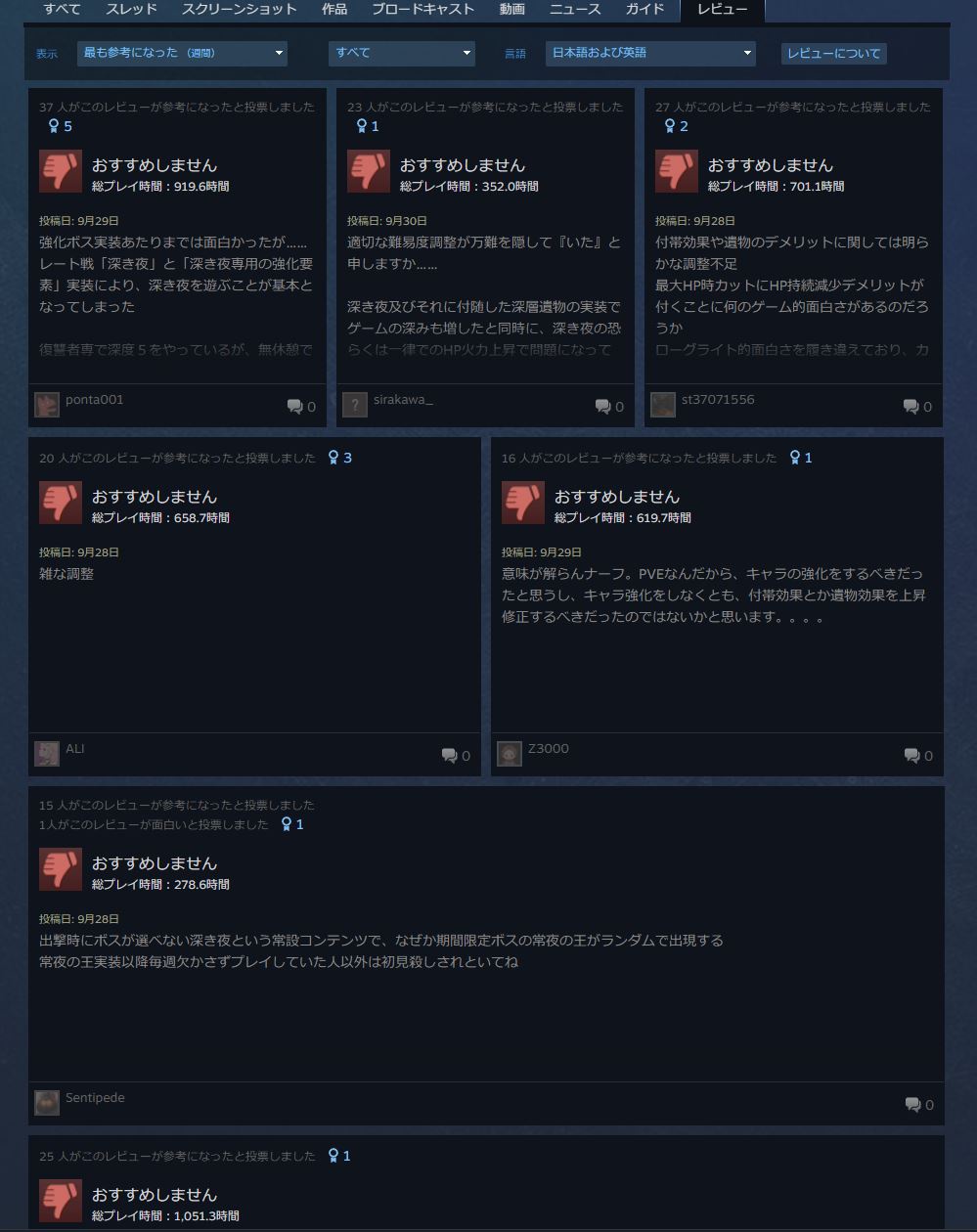 【ナイトレイン】最近の参考になったレビュー上位、とんでもないことになる… 2025/10/5 ダークソウルまとめ速報 " " 8: ID:67ZlNEKV0.net 最近の参考になったレビュー上位 怒涛の低評価で吹いた 続きを読む Source: ダークソウルまとめ速報