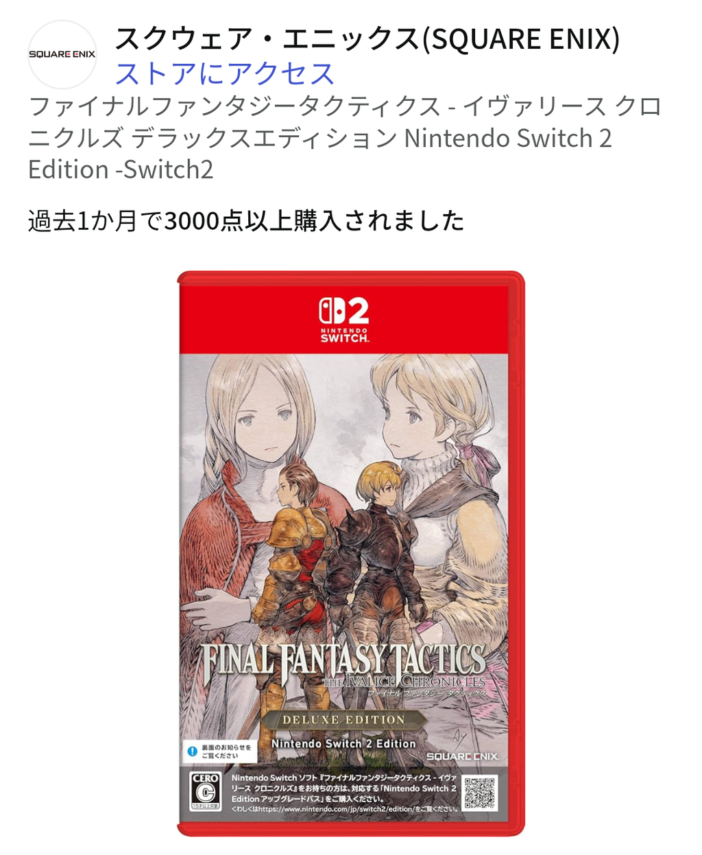 【悲報】FFTリマスターさん、尼での売上が悲惨すぎるwwwwwwwwww 2025/10/7 ゲーム実況者速報 " " 1: ゲーム実況者速報 2025/09/30(火) 09:54:41.87 ID:uLdsiAwn0 障壁版 3600本 Switch&Switch2版 8000本 続きを読む Source: ゲーム実況者速報