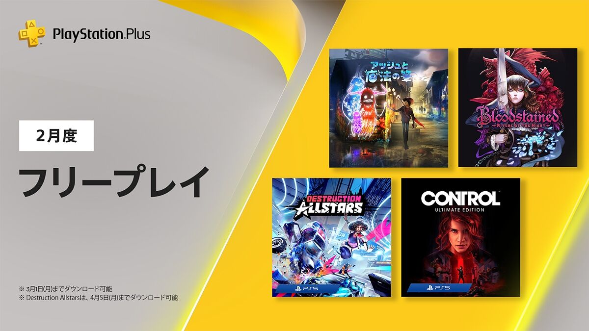 PS Plus『2月のフリープレイ』配信情報公開!PS4「アッシュと魔法の筆」&「ブラッドステインド」、PS5「Destruction AllStars」&「CONTROL UE」が登場! 2021/1/28 PS5速報! " " 『2月のフリープレイ』配信情報公開!配信日は2月2日から 続きを読む Source: PS4速報!