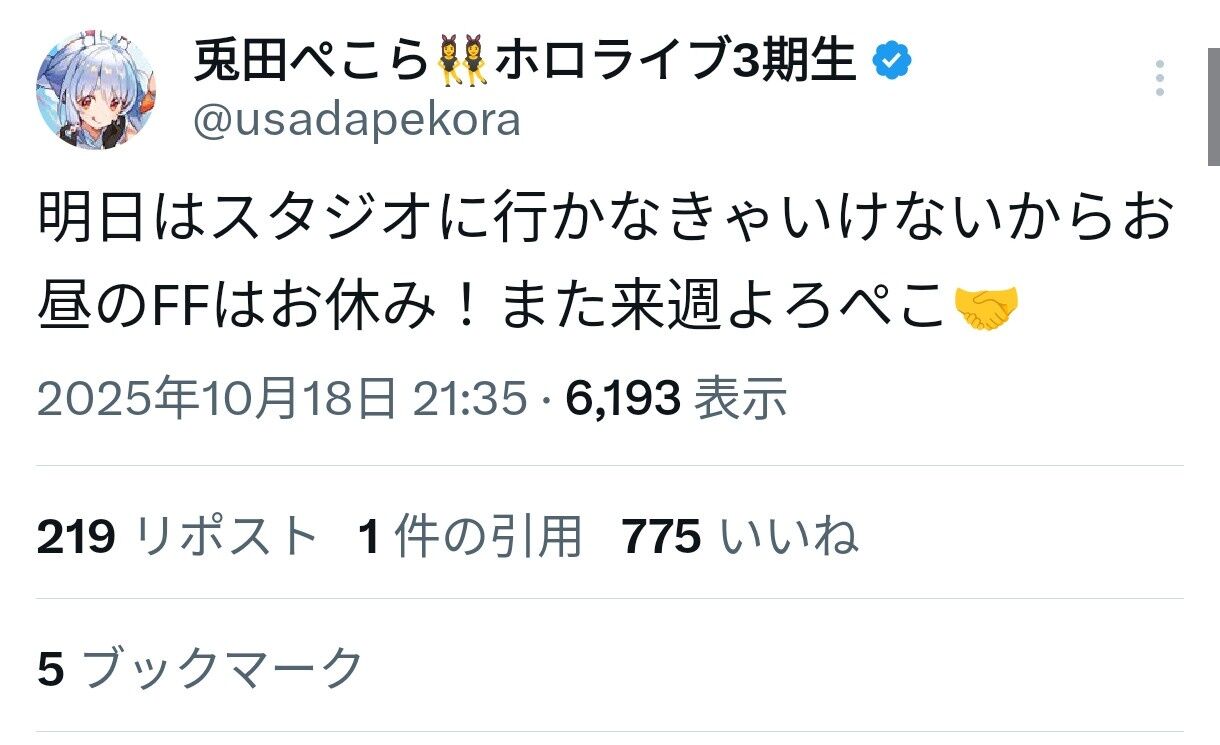 【悲報】超人気Vチューバーさん、今日のFF7配信はお休みの模様…… 2025/10/19 ゲーム実況者速報 " " 1: ゲーム実況者速報 2025/10/18(土) 21:40:33.635 ID:aqy26Dpz0 続きを読む Source: ゲーム実況者速報