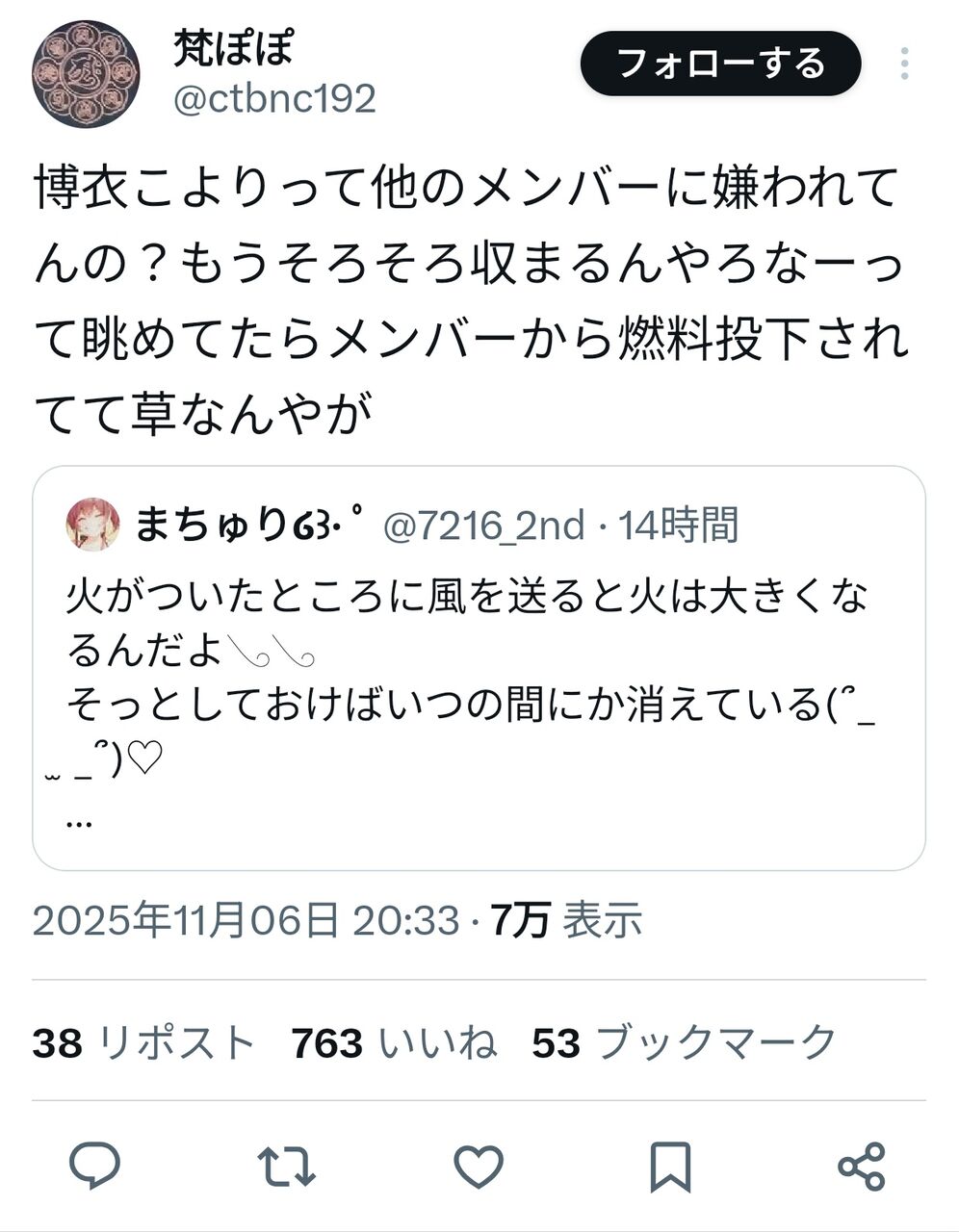 【悲報】人気Vチューバーさん、火に油を注ぐ…… 2025/11/7 ゲーム実況者速報 " " 1: ゲーム実況者速報 2025/11/07(金) 10:10:05.872 ID:XHThjTUrM どうして火に油を注いでしまうのか 続きを読む Source: ゲーム実況者速報