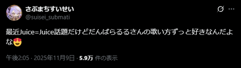 大人気Vチューバーさん、Juice=Juiceに言及する! 2025/11/12 ゲーム実況者速報 " " 1: ゲーム実況者速報 2025/11/09(日) 14:31:41.52 0 これhsチャンス 続きを読む Source: ゲーム実況者速報