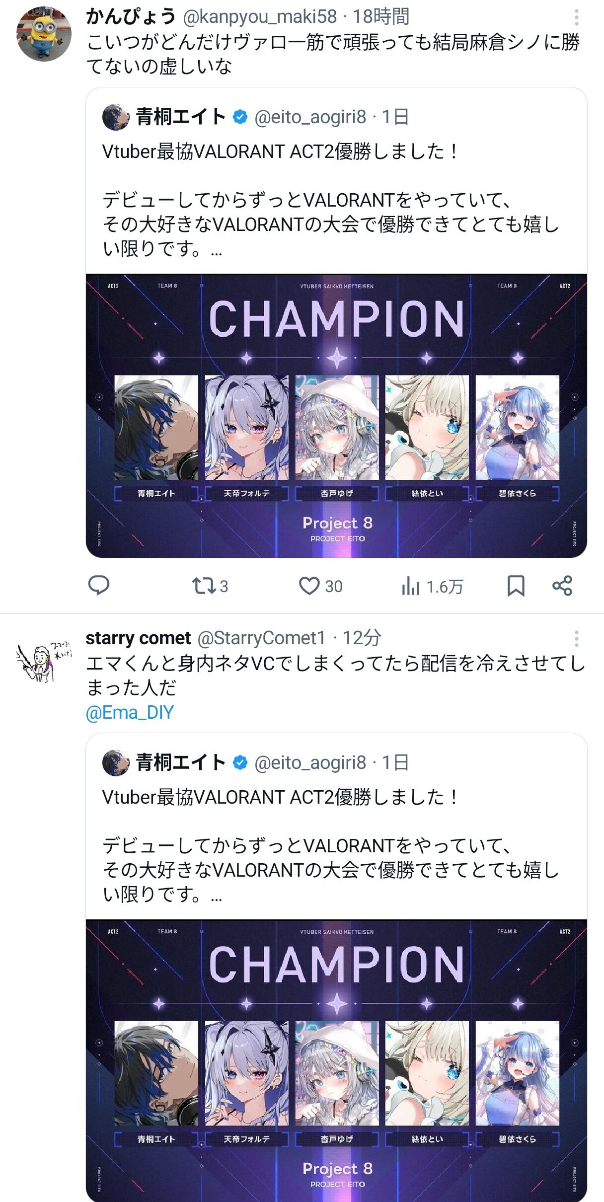 【炎上】無名Vチューバーさん、ゲーム大会で優勝したのにボロくそに叩かれてしまう…… 2025/11/12 ゲーム実況者速報 " " 1: ゲーム実況者速報 2025/11/12(水) 16:39:26.513 ID:hRAFX2p20 葛葉チームが優勝できなかったせいでそんなに荒れたのかって優勝者のポスト見てみたらボロクソ言われてて怖くなった https://twitter.com/thejimwatkins 続きを読む Source: ゲーム実況者速報