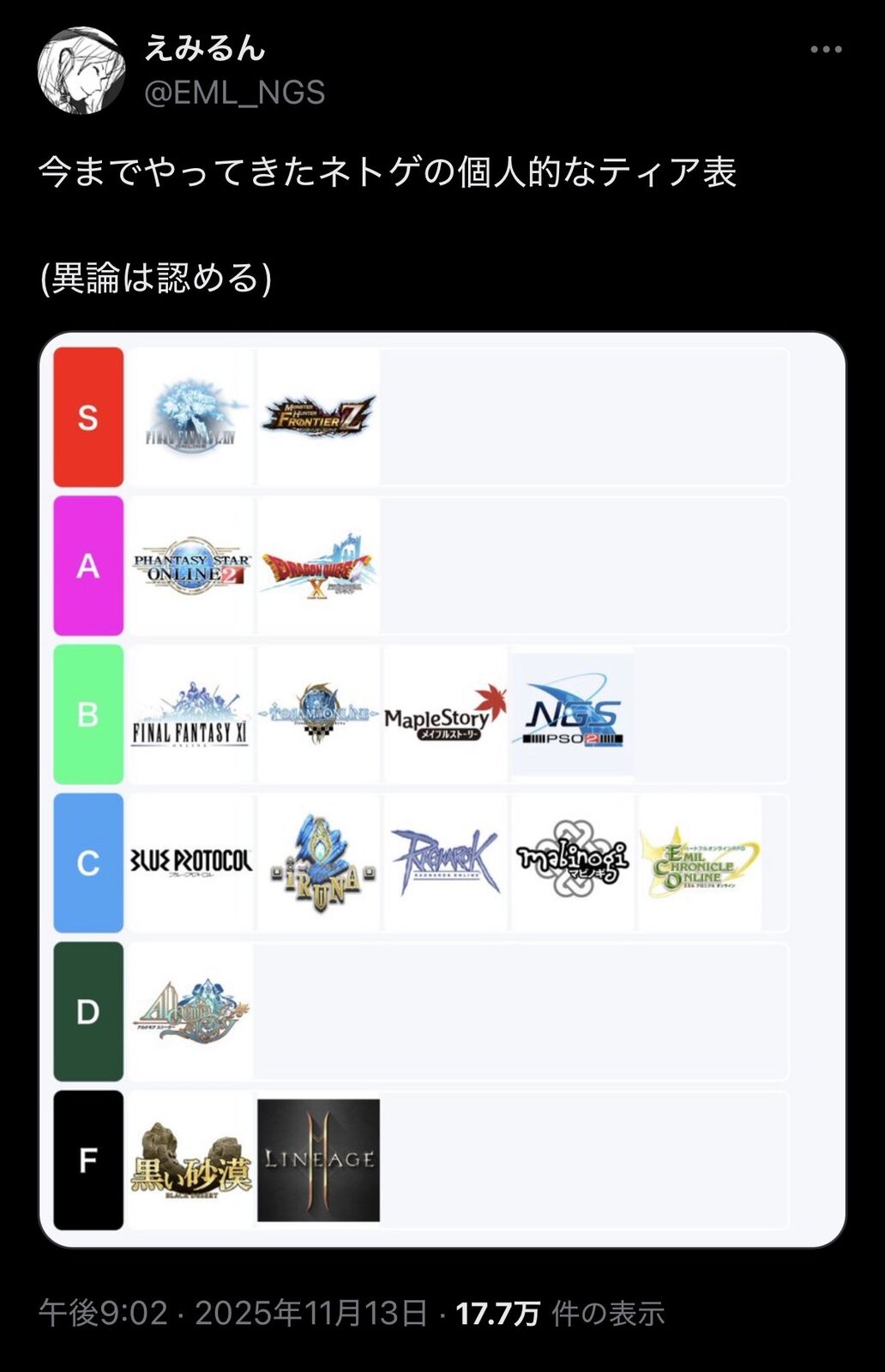【決定版】オンラインゲームのTier表、ついに完成する!これにはゲハも満場一致 2025/11/16 Y速報 " " 1: 2025/11/15(土) 11:29:21.20 ID:7DokW9dm0 続きを読む Source: Y速報