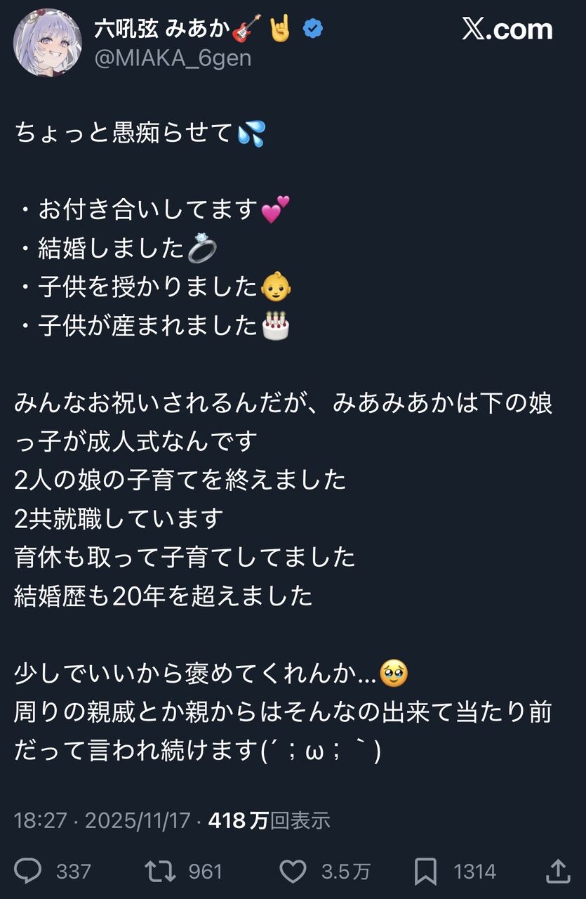 【困惑】Vチューバーさん、褒めてほしくてカミングアウト→生々しすぎてリスナードン引き…… 2025/11/18 ゲーム実況者速報 " " 1: ゲーム実況者速報 2025/11/18(火) 11:30:55.208 ID:6AfTfxSi0 うーん、、、もうそういう歳ではないのでは… 続きを読む Source: ゲーム実況者速報