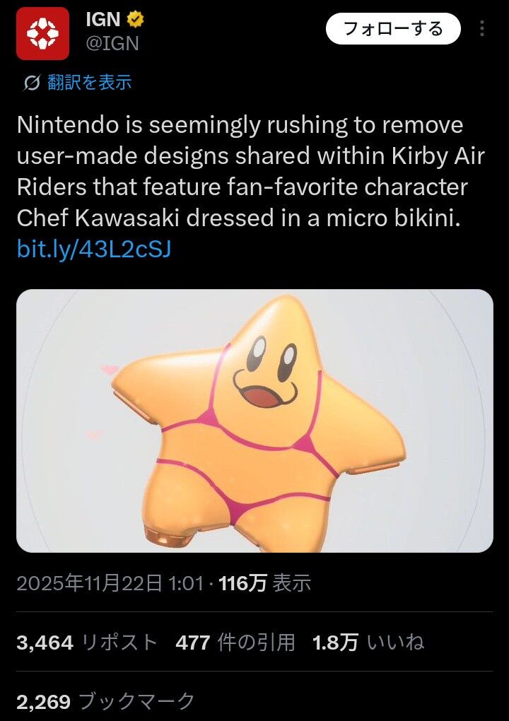 【悲報】カービィのエアライダーさん、コックカワサキ問題が海外の大手メディアに取り上げられるwwwwwwwwww 2025/11/24 ゲーム実況者速報 " " 1: ゲーム実況者速報 2025/11/22(土) 14:25:34.52 ID:EBRUmE3s0 表現規制として海外の大手メディアに取り上げられたもよう 続きを読む Source: ゲーム実況者速報