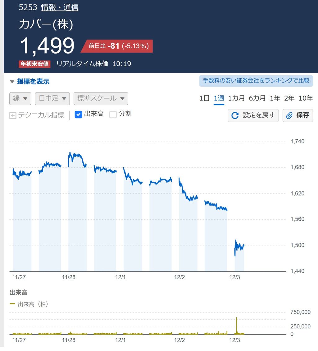 ホロライブ所属のVTuberである天音かなたさんの卒業が発表されたことが市場からネガティブに受け止められているようだ。