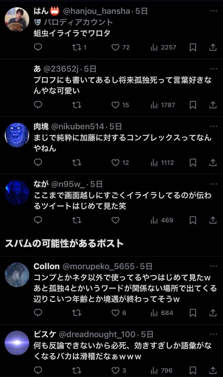 【悲報】加藤コンプさん、最近は勢いがなくなる…… 2025/12/8 ゲーム実況者速報 " " 53: ゲーム実況者速報 2025/12/06(土) 22:57:50.34 「自分の人生もそれくらい必○に努力してたら 将来孤独○する未来は避けられたのに」 と言われガチギレしてしまう加藤コンプさん 続きを読む Source: ゲーム実況者速報