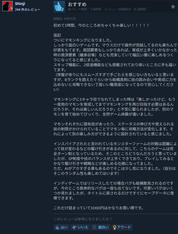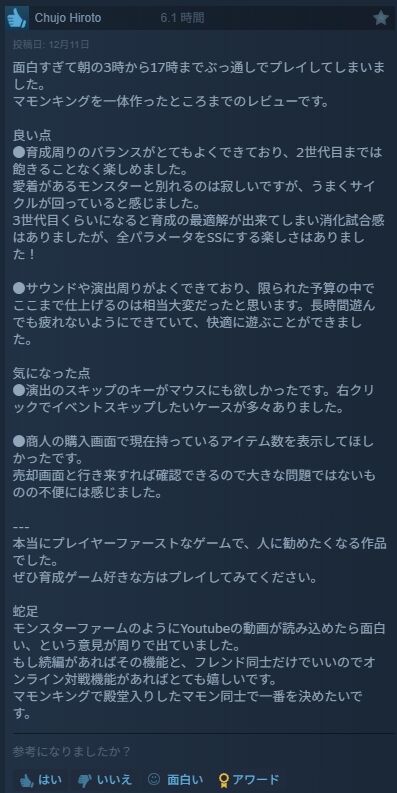 なお、記事執筆時点(12月11日13時ごろ)では、Steamの日本国内の“売上トップ”のチャートで1位。