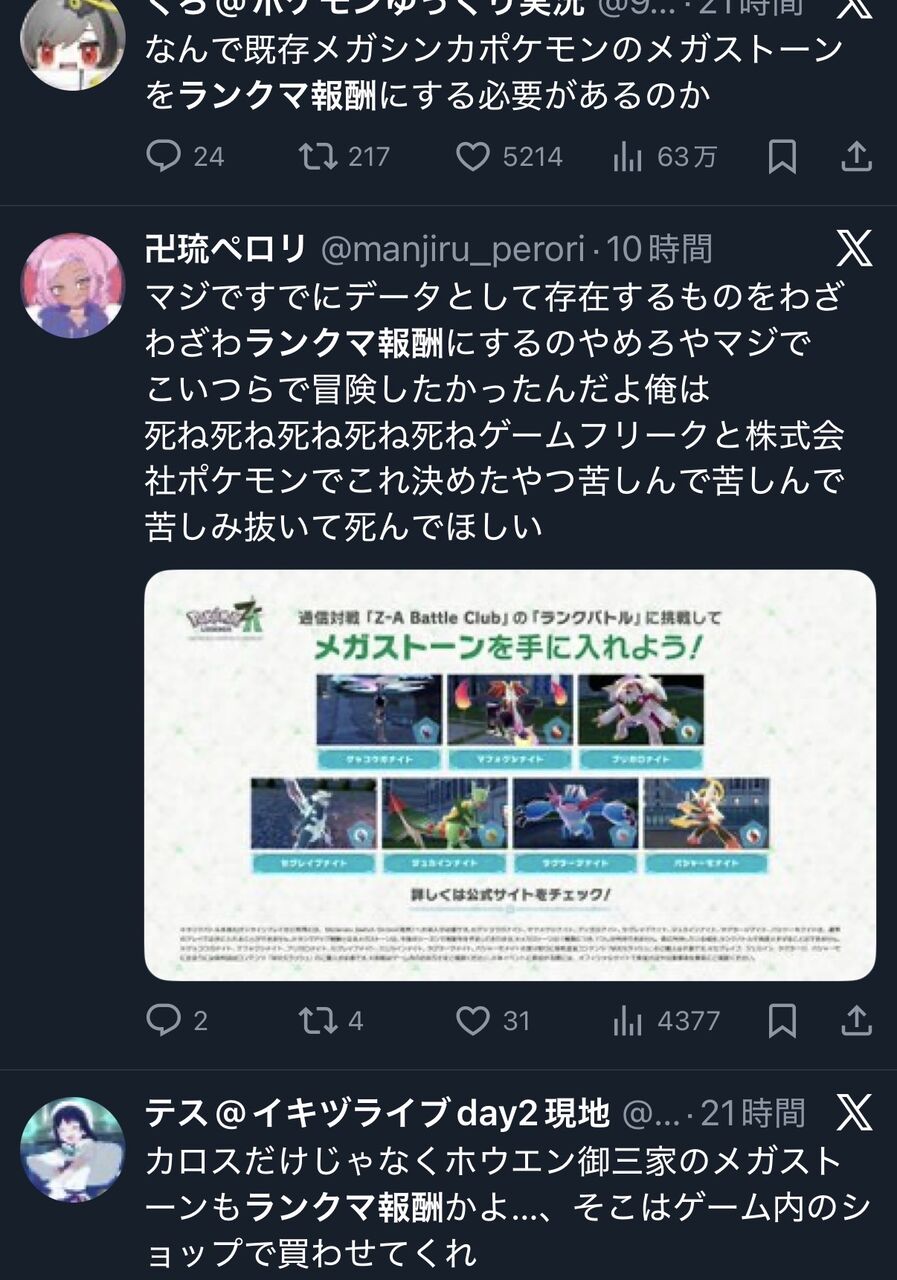 【大荒れ】ポケモンZAさん、あれだけ批判があったのに更にランクマ報酬を追加してしまう…… 2025/12/12 ゲーム実況者速報 " " 1: ゲーム実況者速報 2025/12/10(水) 21:04:42.78 ID:ZWkUvLxN0 ゲーフリくん…こだわり出てるね… 続きを読む Source: ゲーム実況者速報