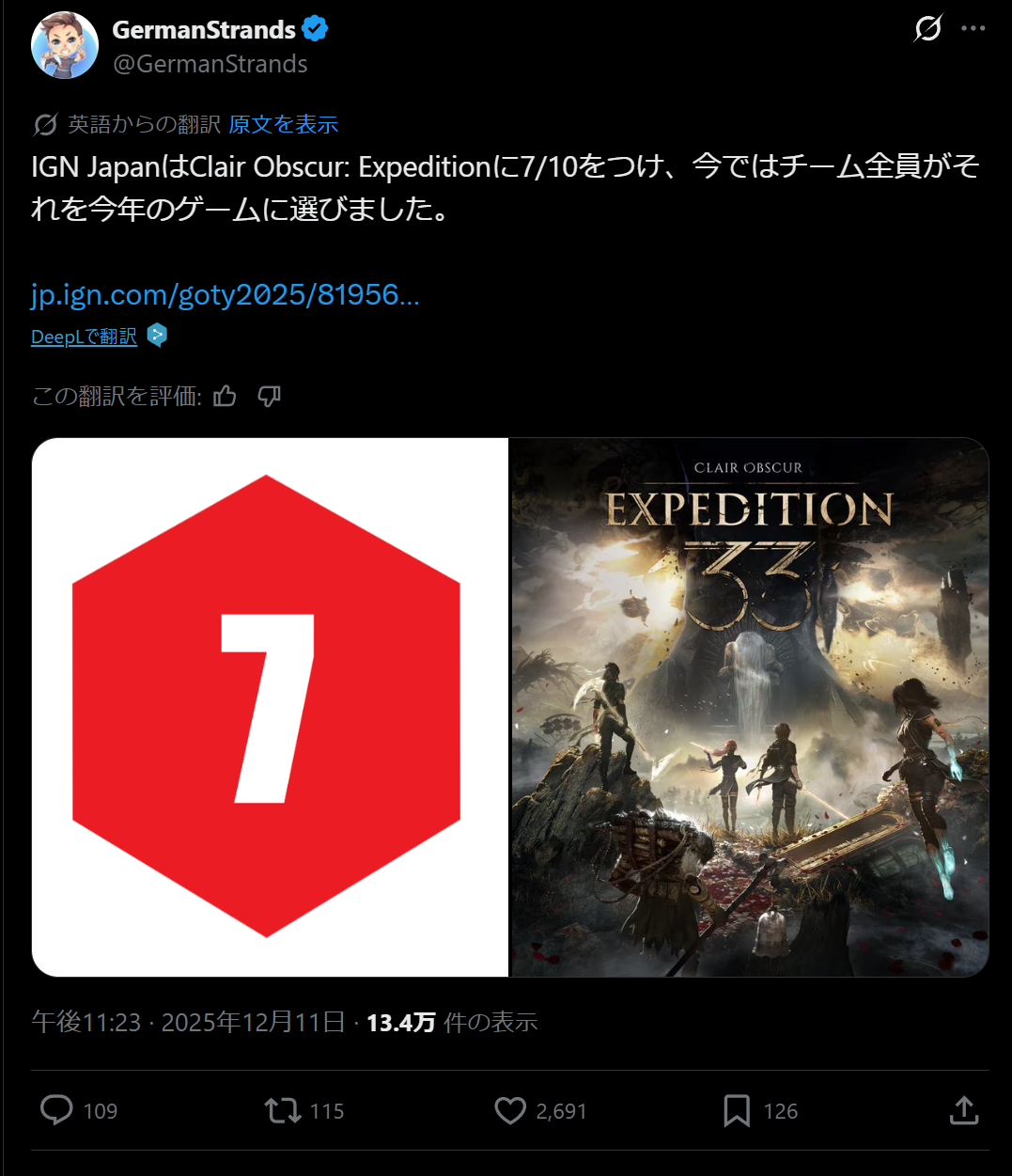 【悲報】IGN Japanさん、海外でバカにされてしまうwwww 2025/12/12 Y速報 " " 1: 2025/12/12(金) 01:52:58.48 ID:/muZVDoA0 続きを読む Source: Y速報