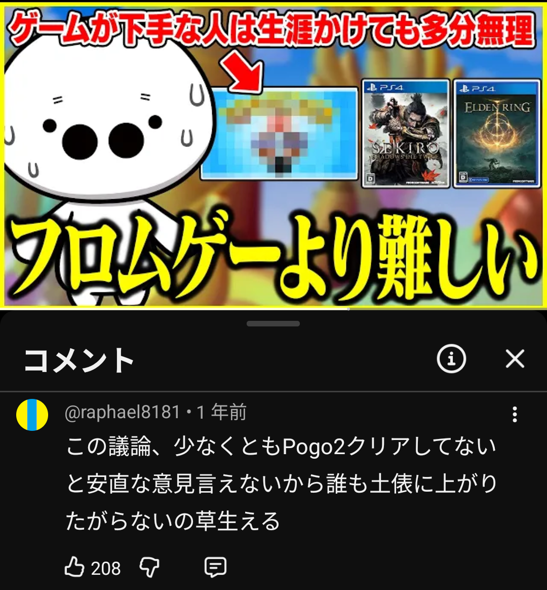 有名ゲーム配信者「フロムゲーは誰でもクリアできて簡単。pogoは下手なやつは一生クリアできない」 2025/12/13 ダークソウルまとめ速報 " " 1: ID:S+fopdr60.net 続きを読む Source: ダークソウルまとめ速報